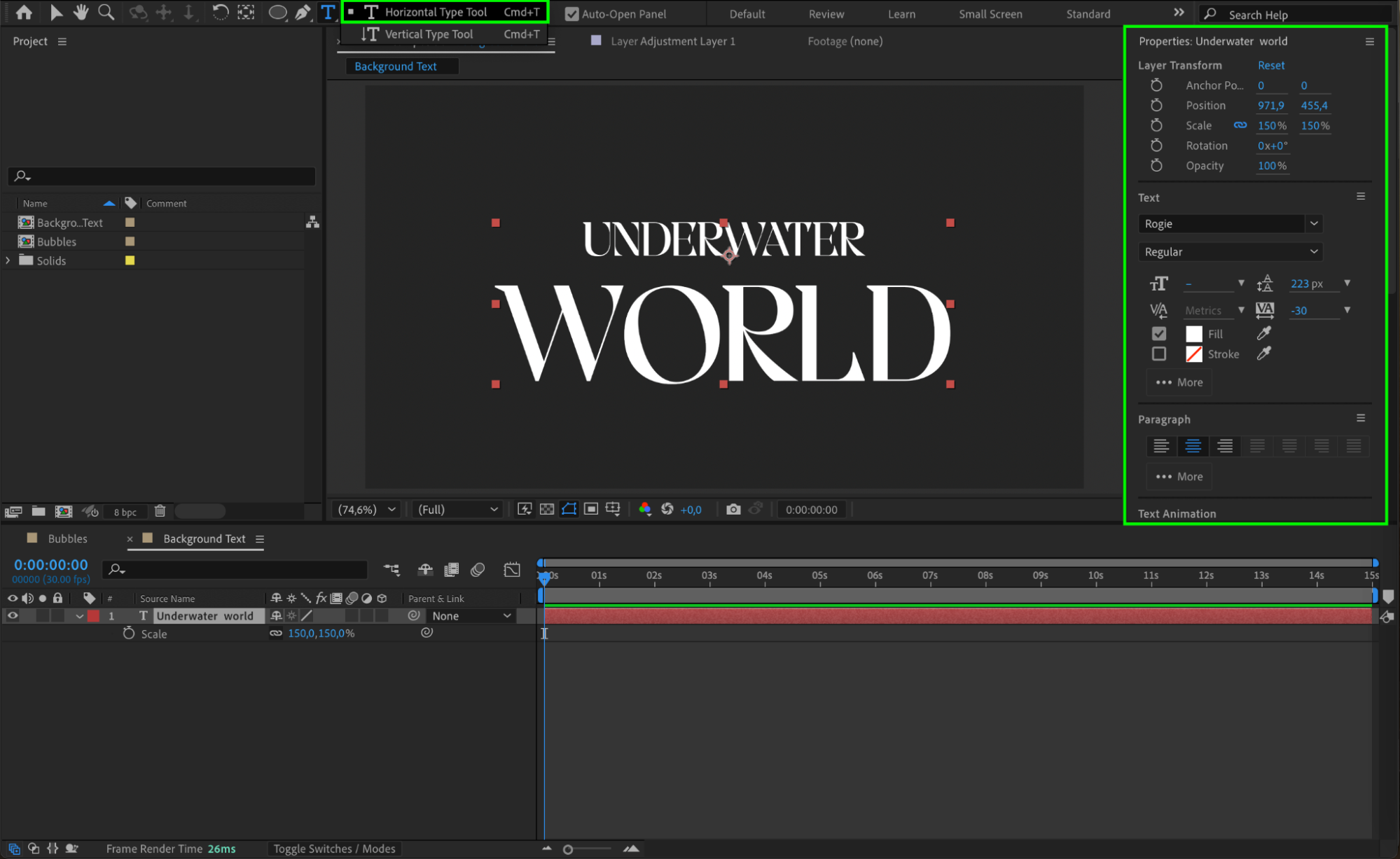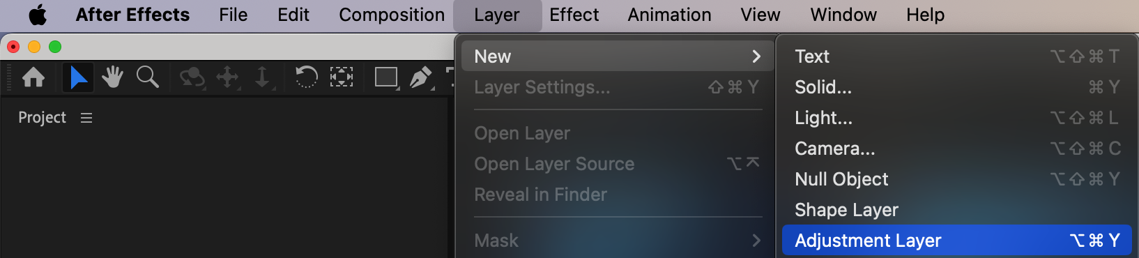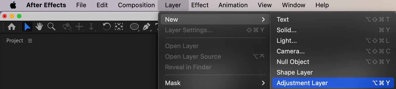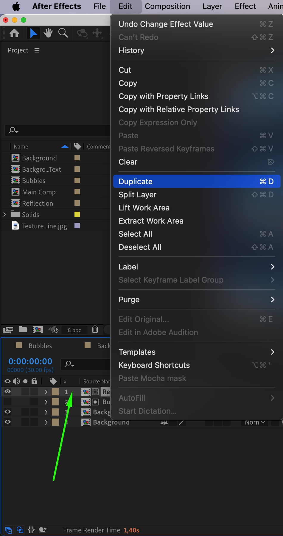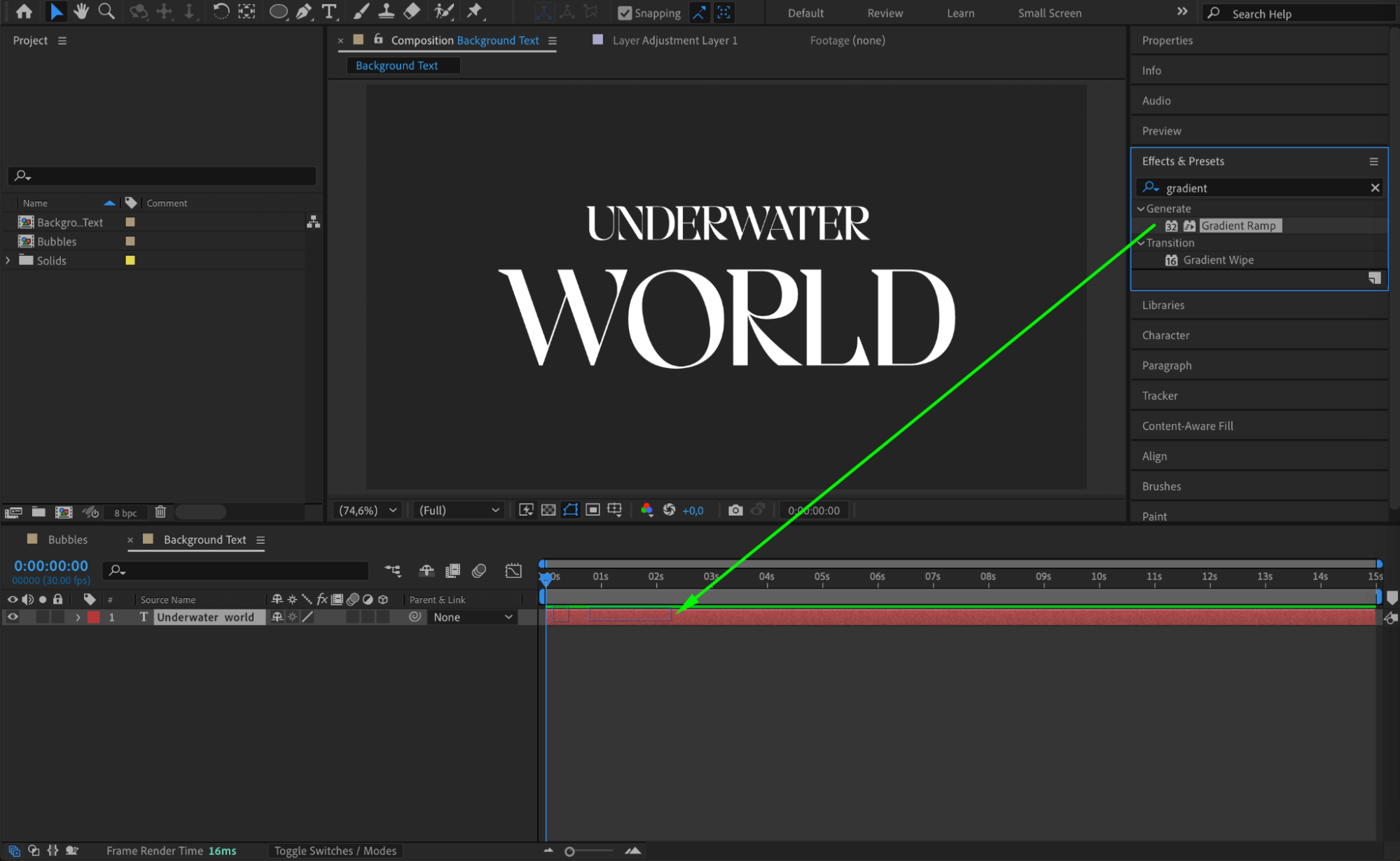 Go to Composition > New Composition, name it “Background”, and add a Solid Layer.