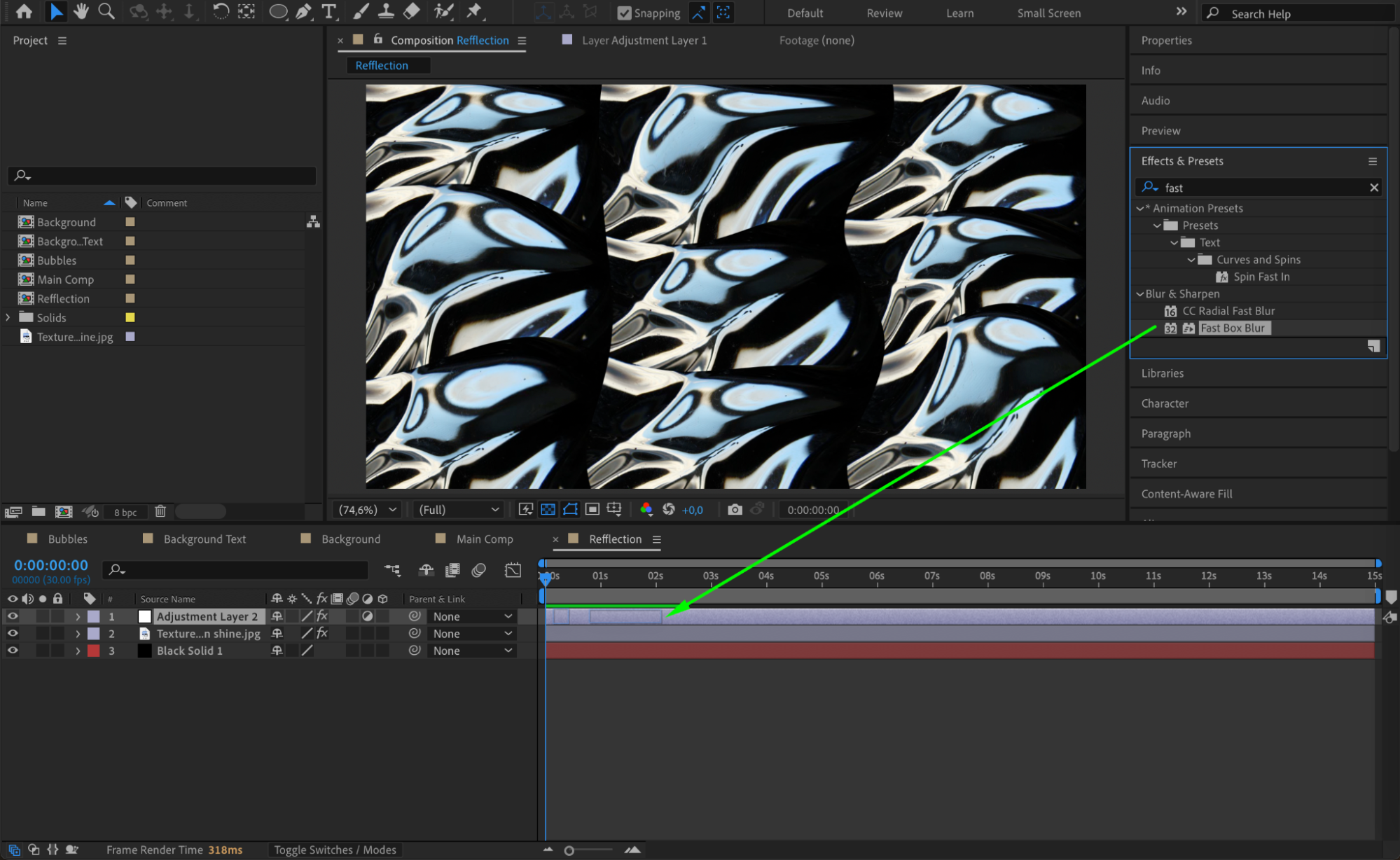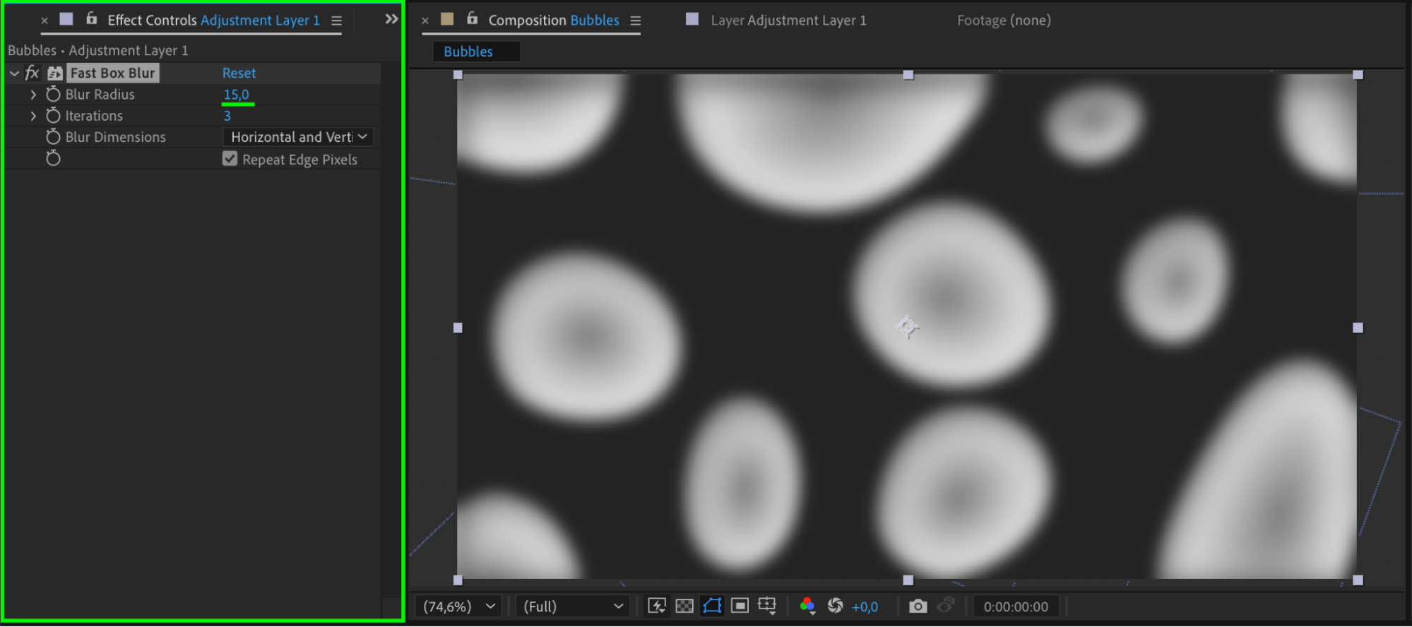 Go to Layer > New > Adjustment Layer. Apply the Fast Box Blur effect and set Blur Radius to 15 to soften the bubbles and add depth.