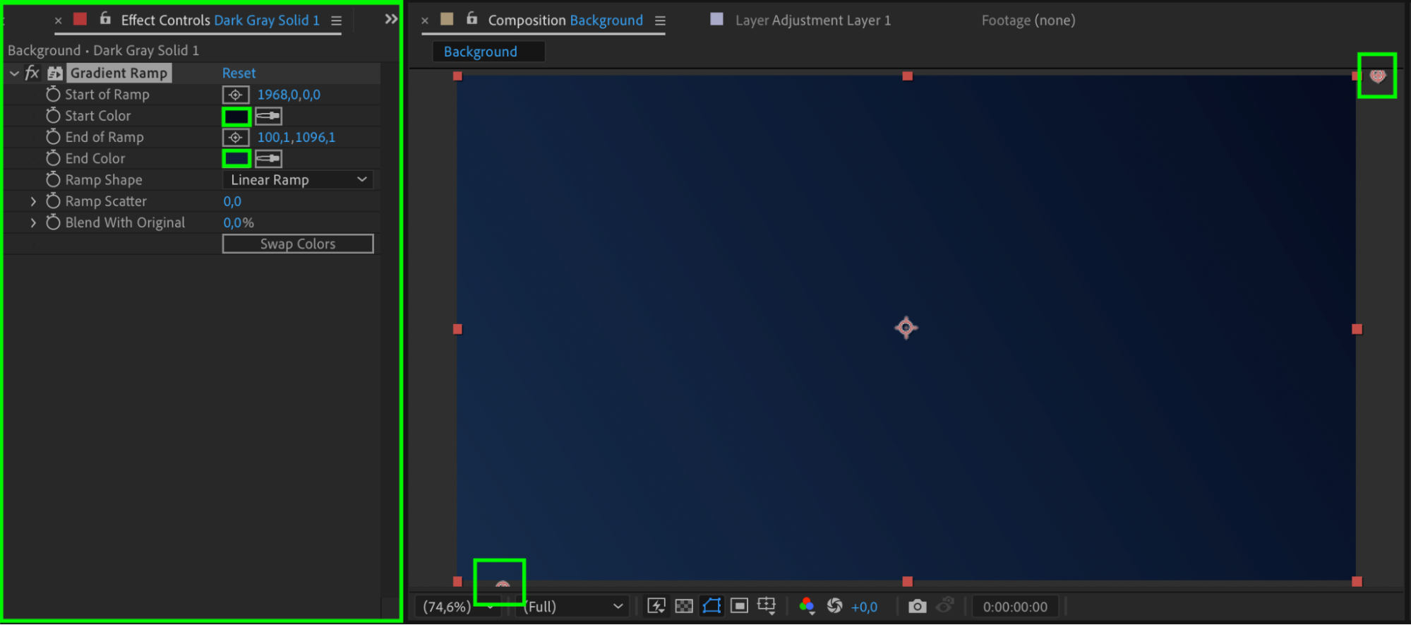 Apply the Gradient Ramp effect and set the colors: Start Color: #070A18, End Color: #111F3.