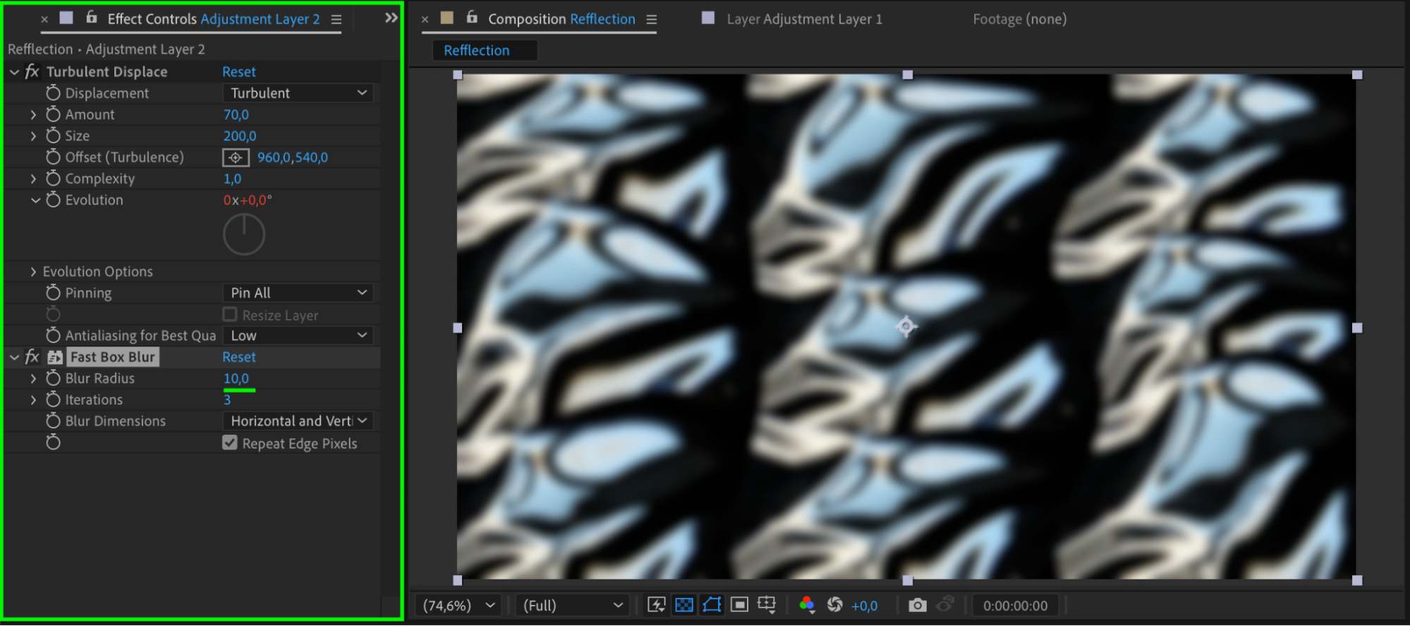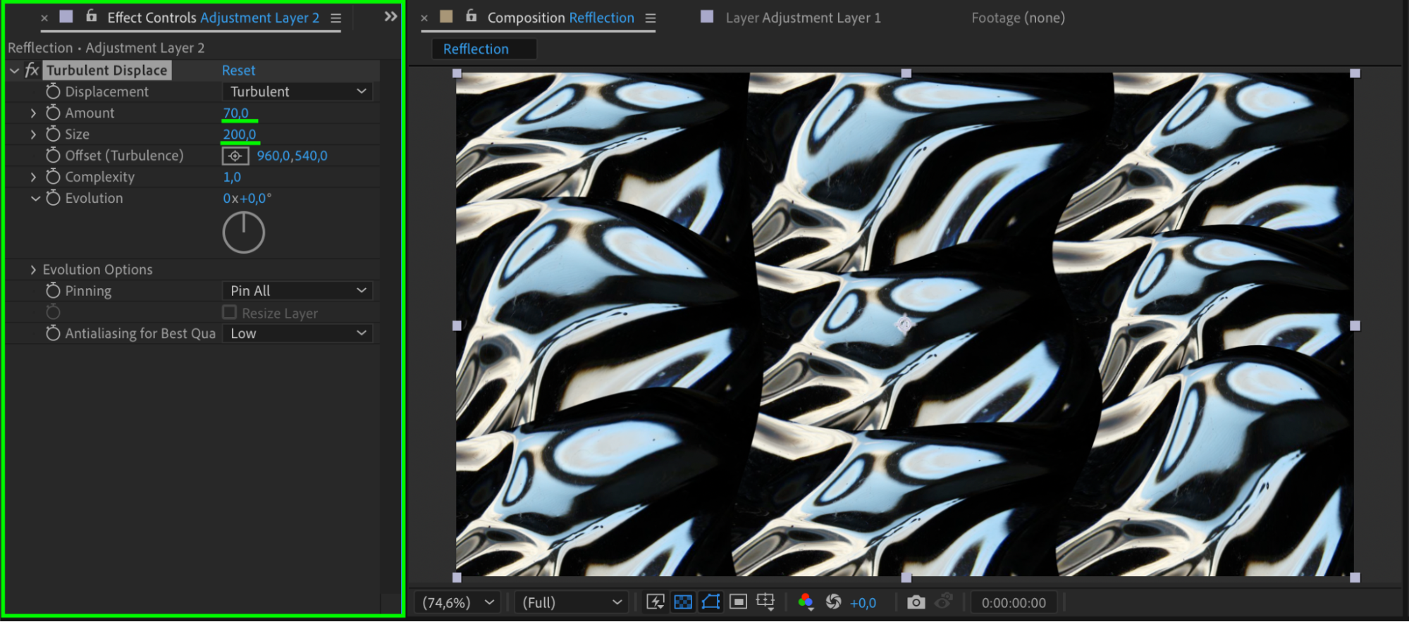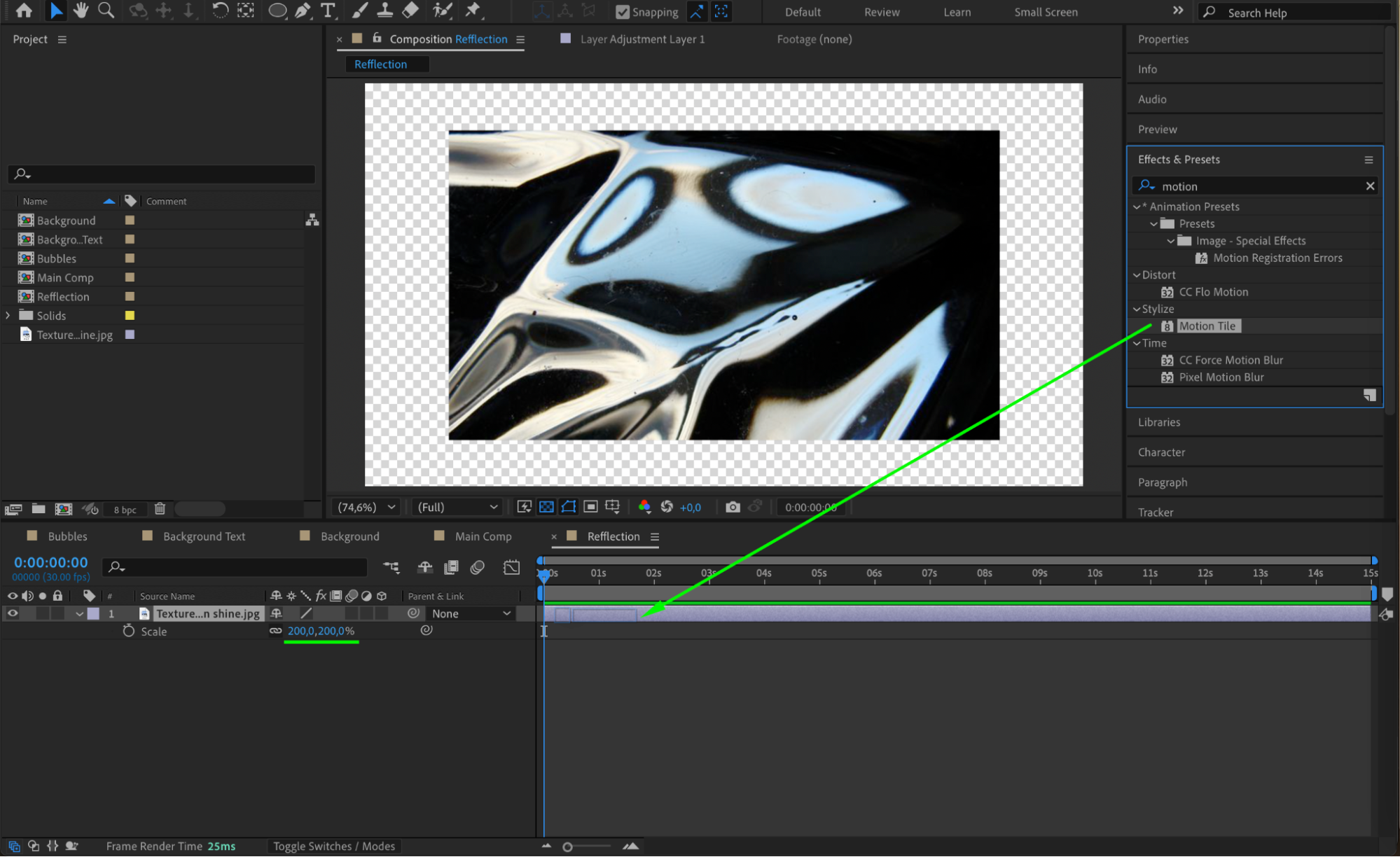 Go to Composition > New Composition, name it “Reflection”, and import a surface texture image to simulate reflection.