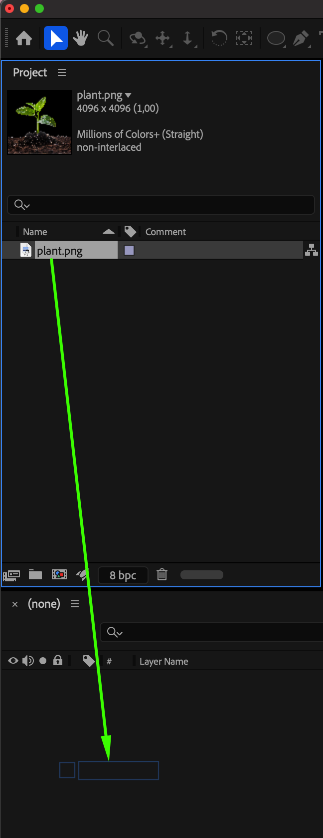 Go to File > Import > File and import your plant image. Drag it onto the timeline.