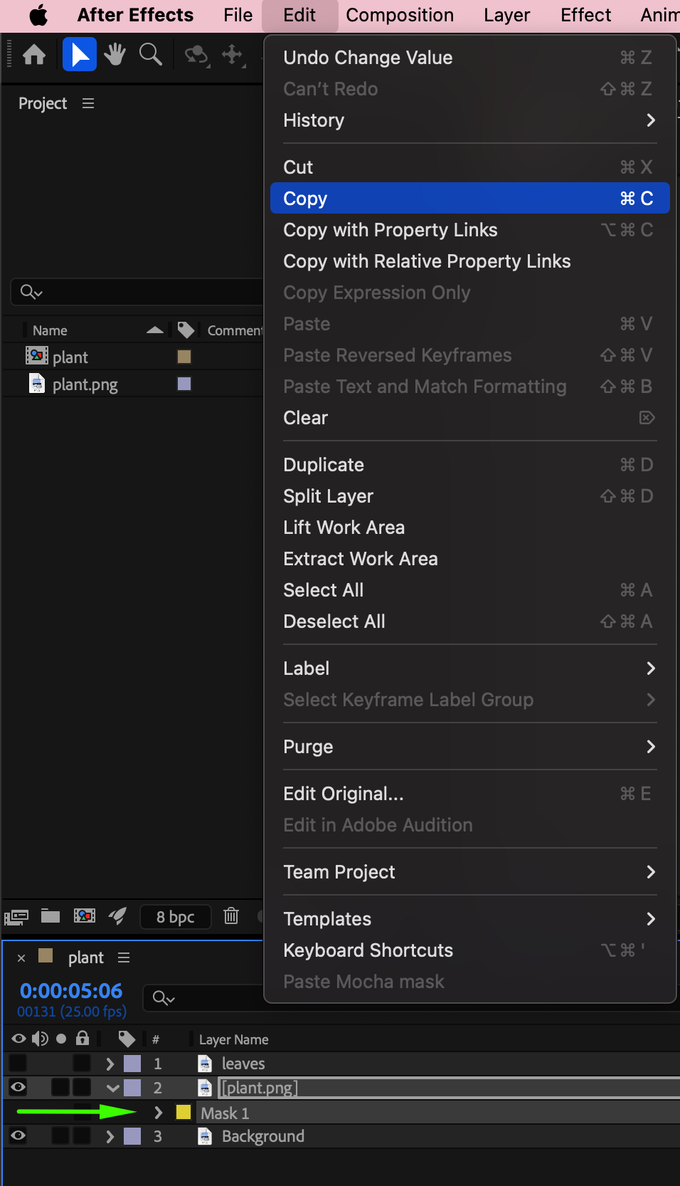Step 7: Copy the Stem Mask to the Leaves Layer
