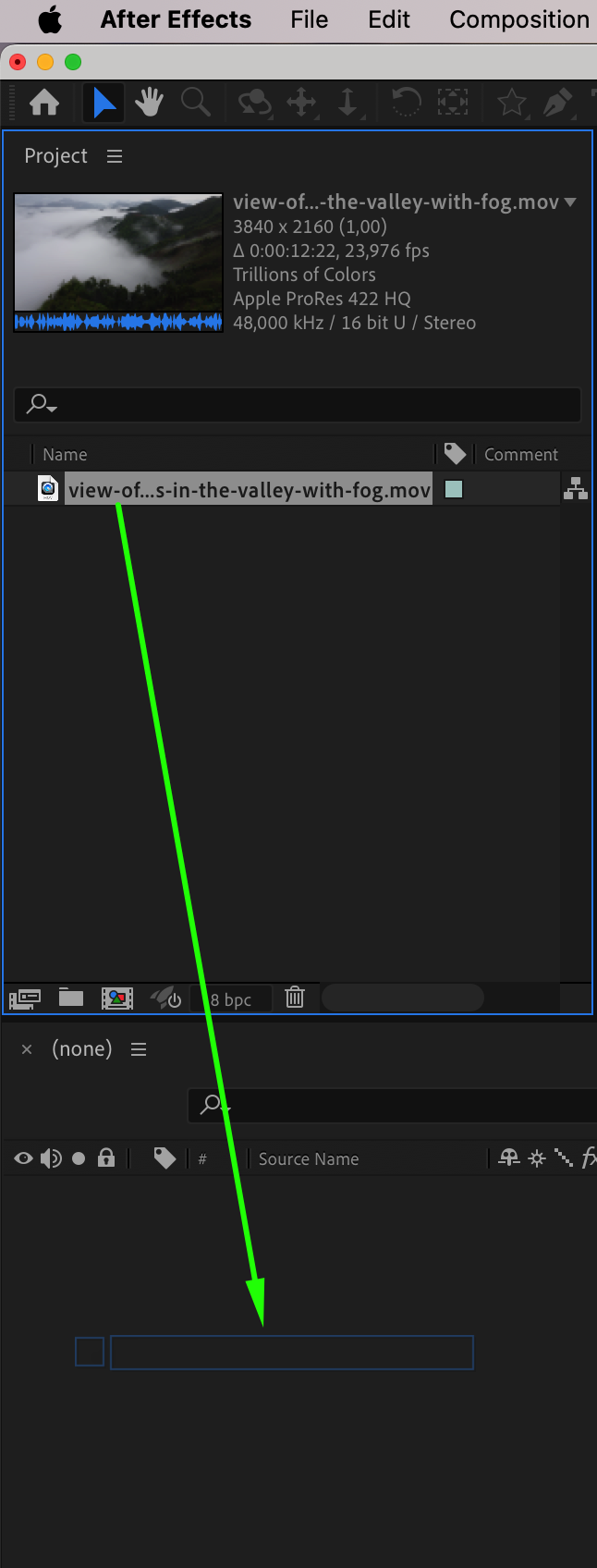 Begin by importing the video or footage you want to apply the rain effect to. To import, go to File > Import > File and select the video file from your computer. After importing, drag the video onto the timeline.