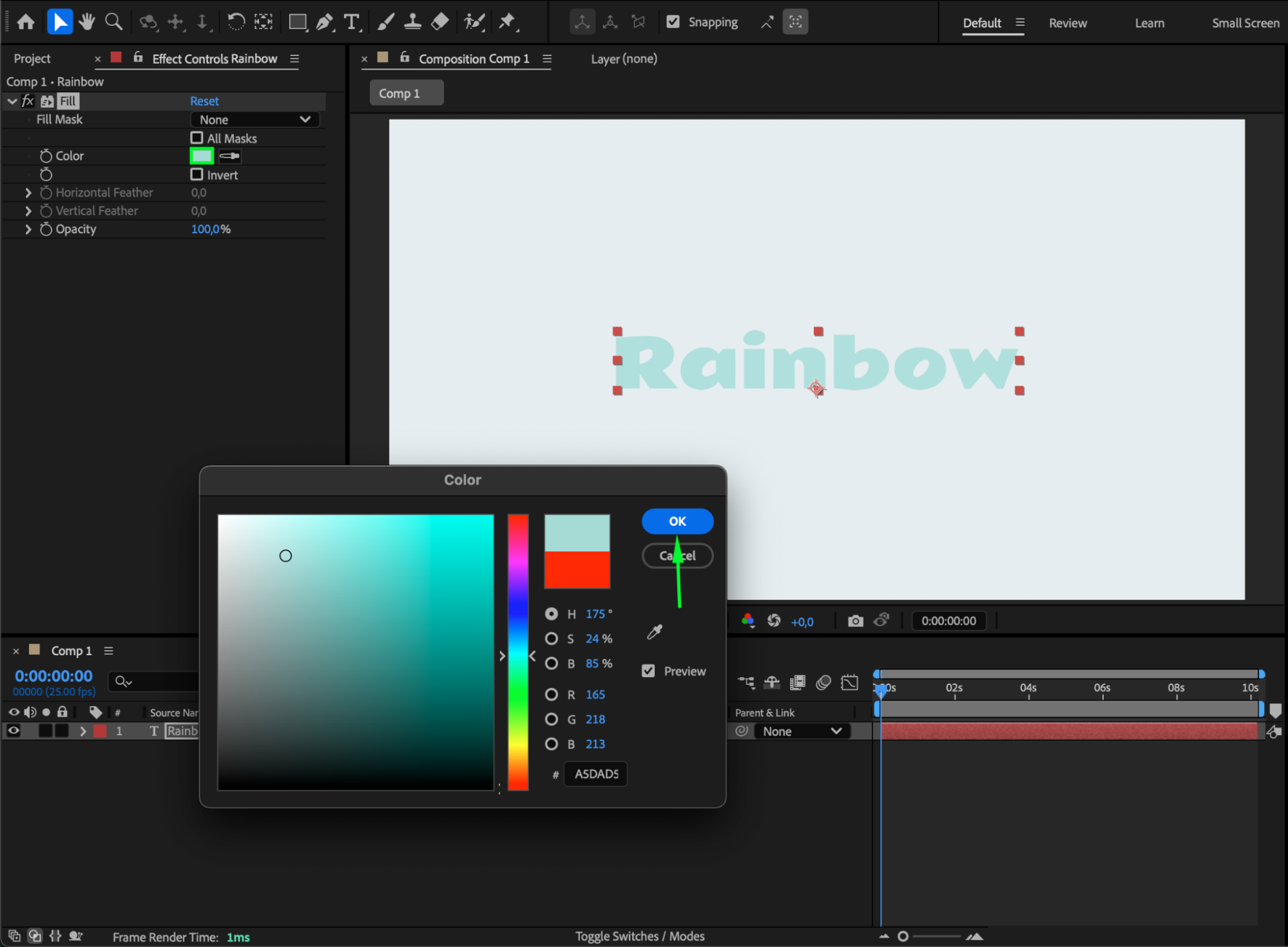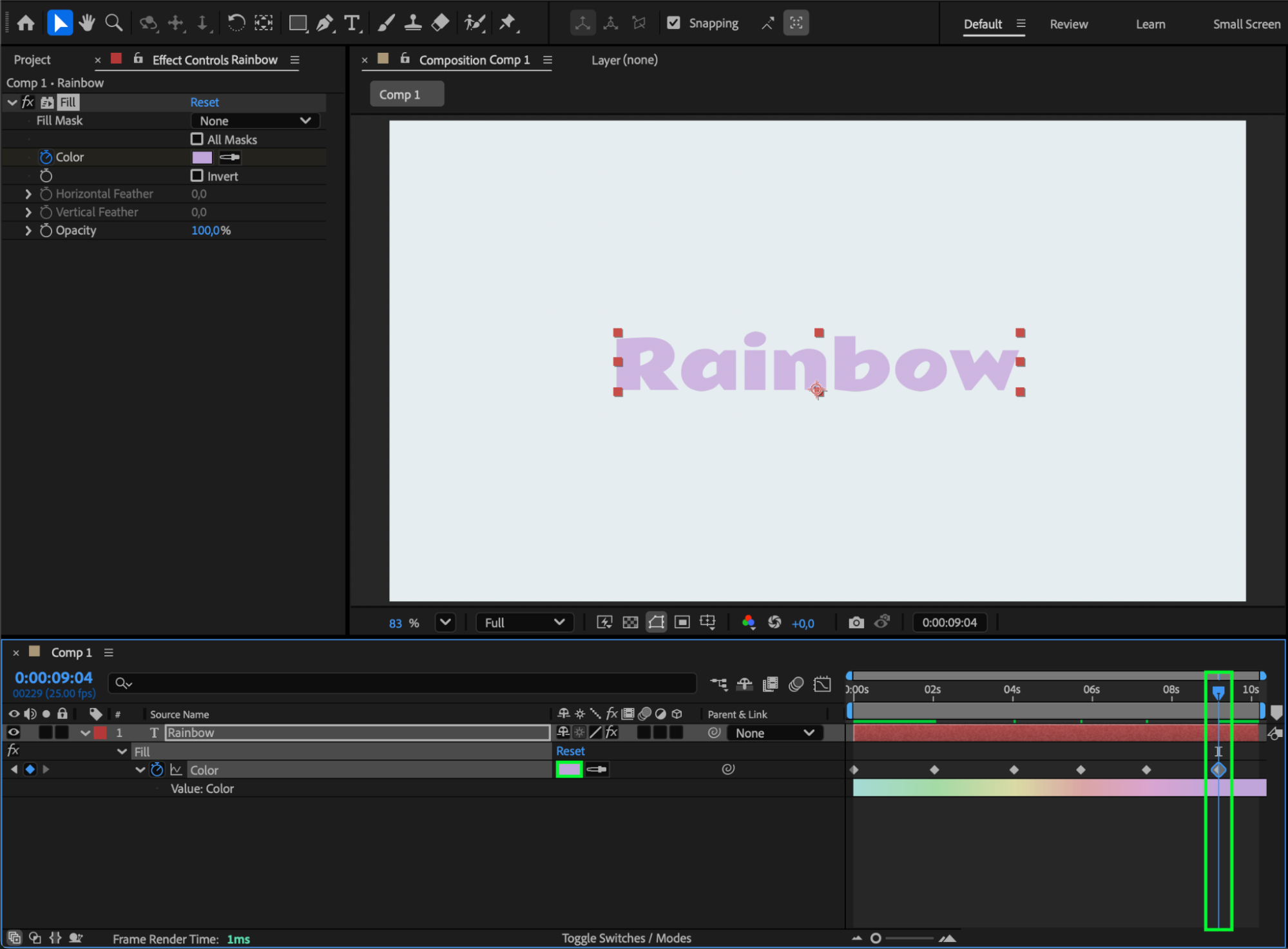 Press Spacebar to preview your animation. If needed, adjust the timing or add additional keyframes for a more complex color sequence.