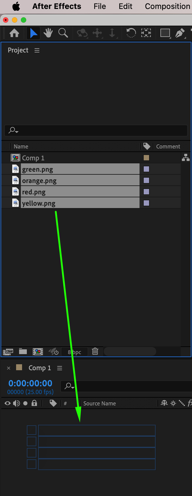 Import the assets you want to animate into your composition by going to File > Import > File. This can include images, videos, audio files, etc.