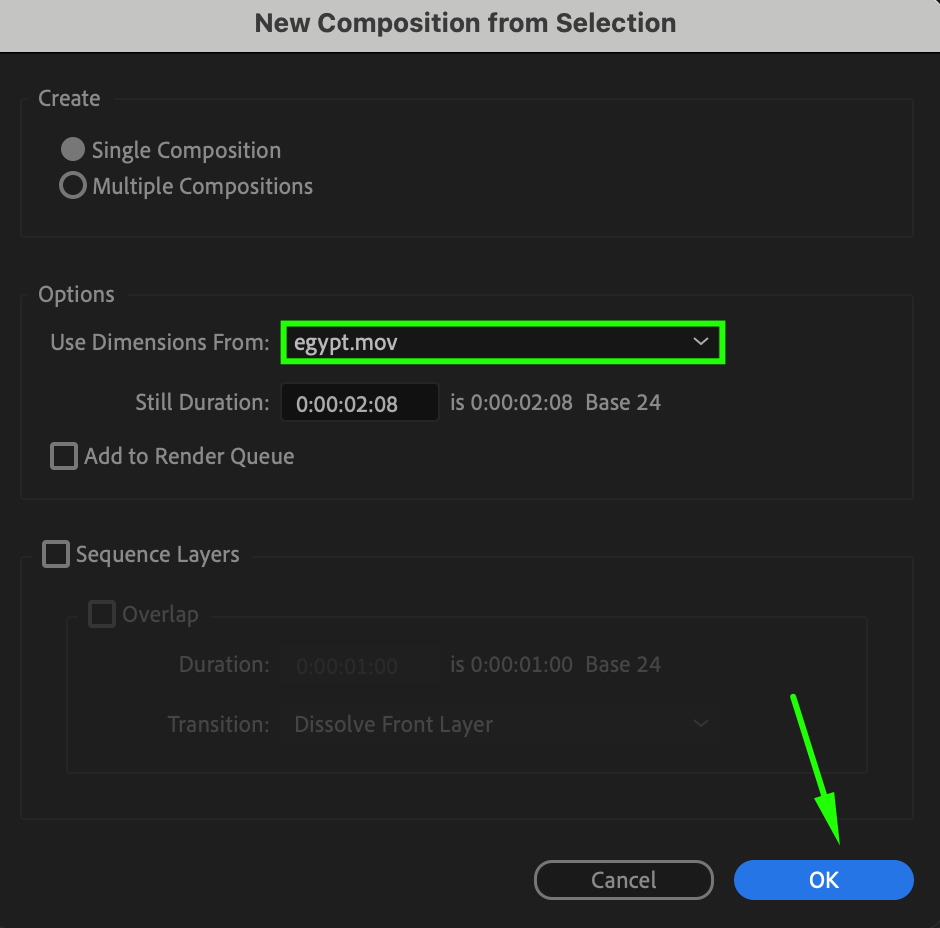 When you’re satisfied with the result, render your project to finalize it. Go to Composition > Add to Render Queue, configure the output settings, and click Render. Your composition, complete with the Linear Wipe transition, is now ready for use.