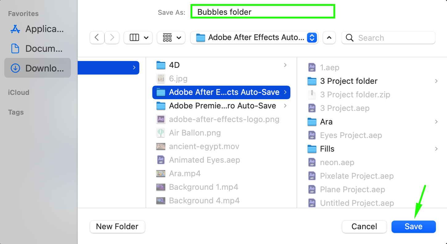 A new window will appear, asking you to name the folder where the collected files will be stored. Choose a clear, descriptive name and click Save. After Effects will now gather all project dependencies into this folder.