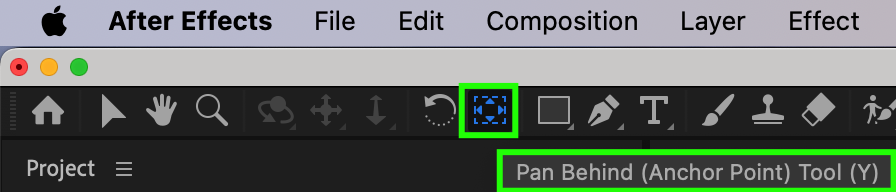 Navigate to the toolbar and select the Pan Behind Tool (Y), or press Y on your keyboard.