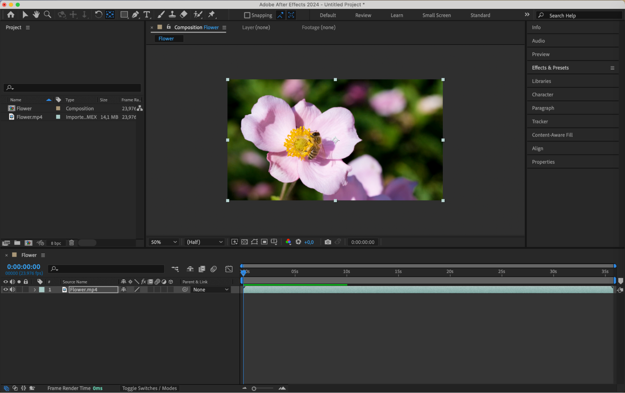 To begin, select the layer you want to adjust in the timeline or composition panel.