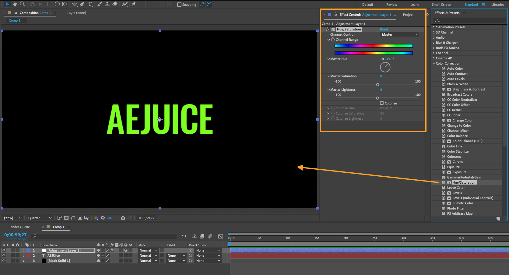 Start by adding the “Hue/Saturation” effect, which allows you to adjust the hue, saturation, and lightness of your footage. Experiment with the sliders to achieve the desired color changes.