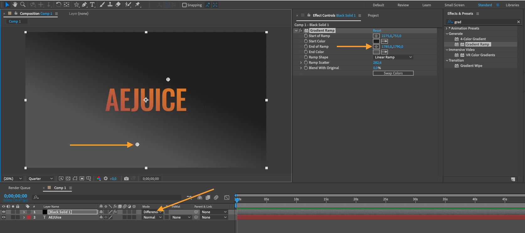 To add a creative touch to your videos, consider applying color overlays and gradients. Create a new solid layer, apply the “Gradient Ramp” effect, customize the colors and direction, and adjust the opacity to achieve the desired look. This technique is perfect for creating transitions or stylized backgrounds.