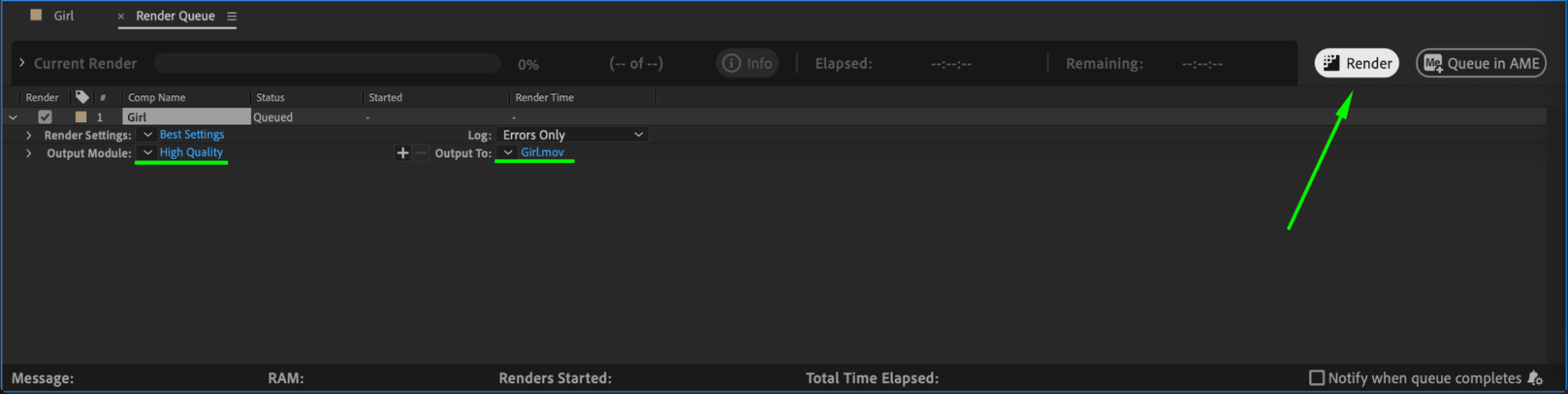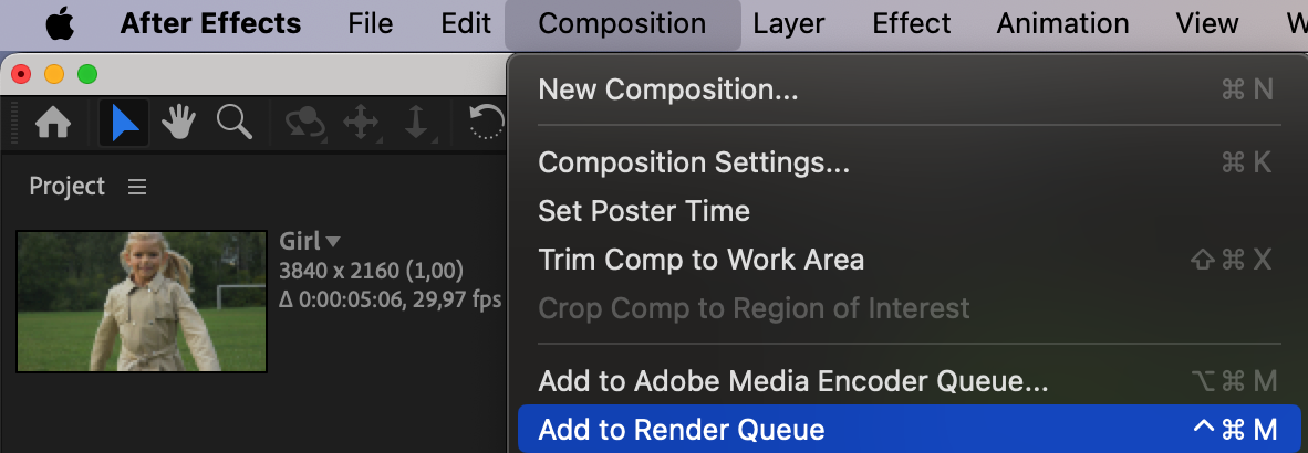 Once you’re satisfied with the result, go to Composition > Add to Render Queue, choose your preferred settings, and click Render to save the video.
