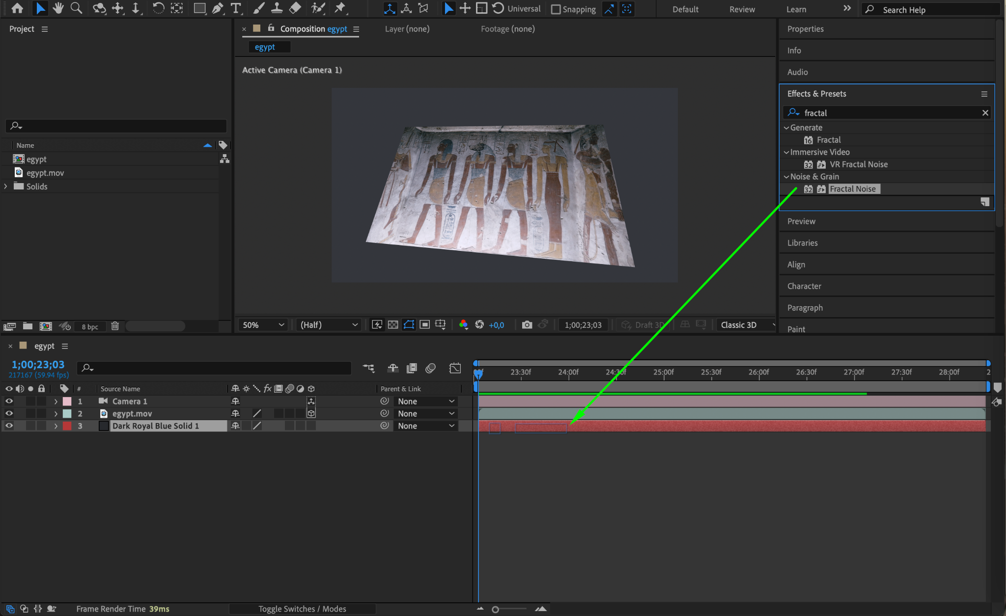 Create a new solid layer by selecting “Layer” > “New” > “Solid.” This layer can serve as a background or ground plane, which will help define the spatial relationships in your composition. Customize the solid layer by applying effects from the Effects & Presets panel, such as Glow or Fractal Noise, to enhance the overall look of your scene. This step helps ground the objects in your composition and gives them a sense of realism.