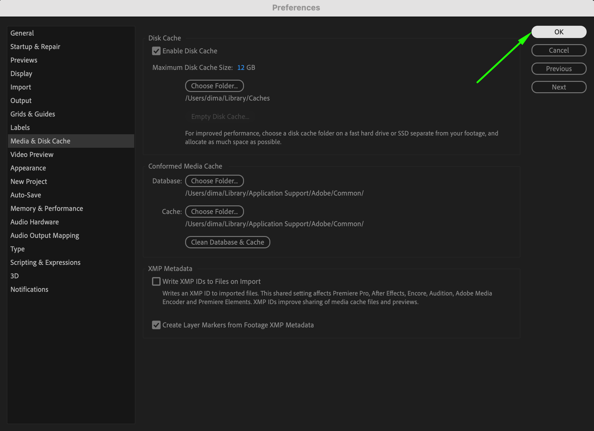 Once you’ve set the new scratch disk location and adjusted the settings, click OK to save your changes. Restart After Effects to ensure the new settings are applied.
