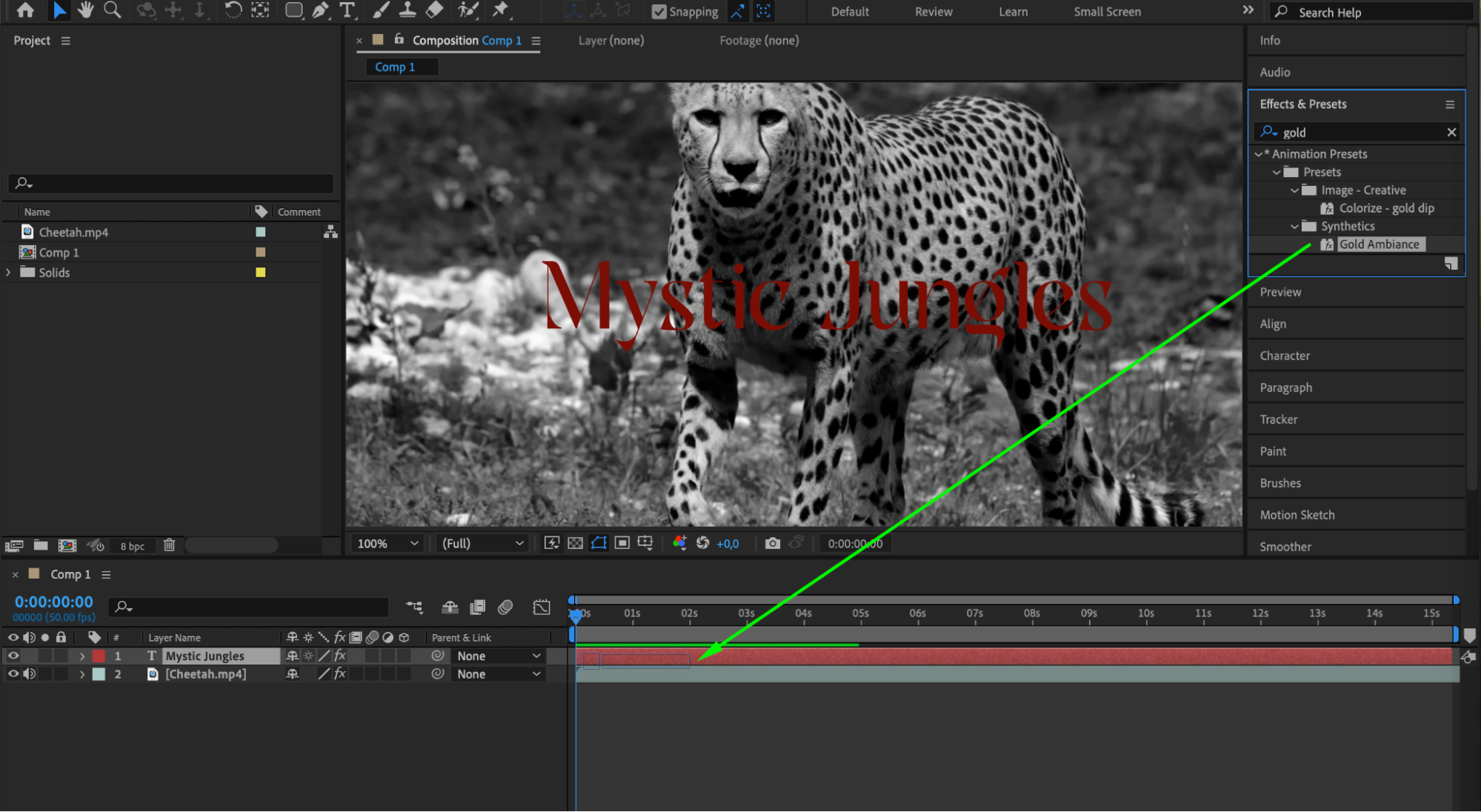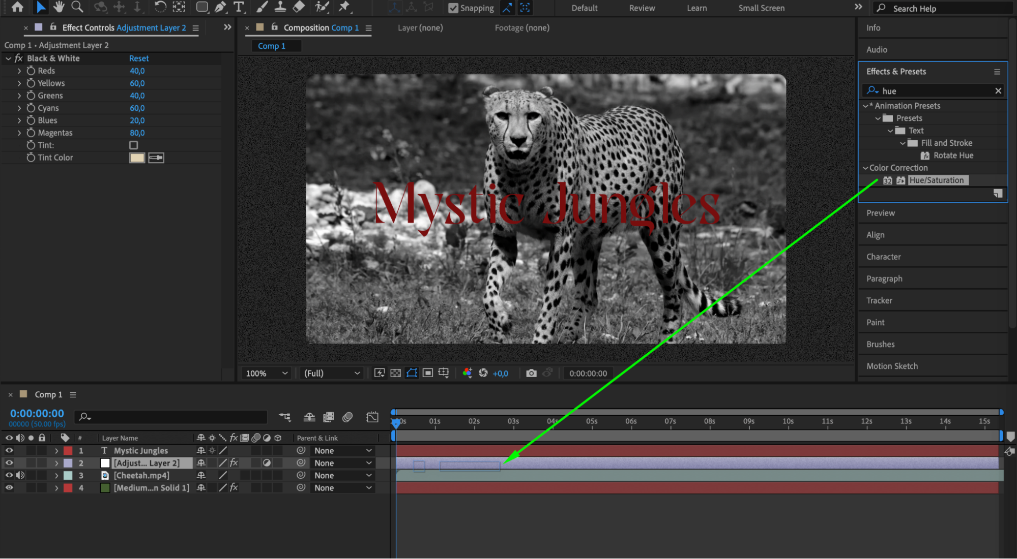 If you want to directly apply color correction effects to a layer, After Effects offers a wide range of options. Select the layer you want to modify, go to the “Effects & Presets” panel, and search for effects like “Tint,” “Colorama,” or “Color Balance.” Drag and drop the effect onto the layer and adjust the parameters to achieve the desired color change. By combining and customizing different effects, you can create unique looks and atmospheres for your composition.
