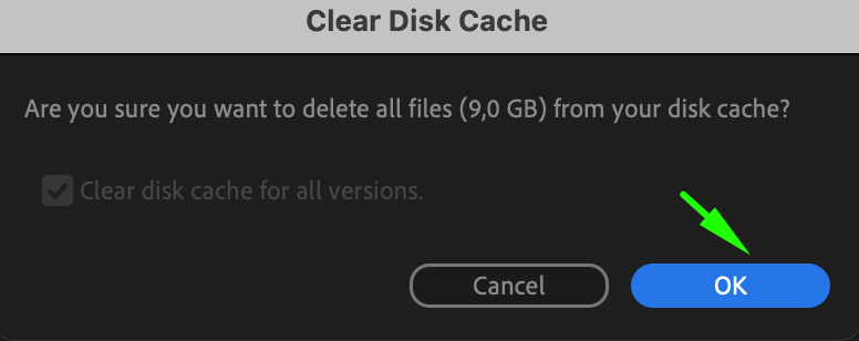If you want to free up space on your previous scratch disk, you can clear the old disk cache. Click the Empty Disk Cache button in the same preferences window. This will delete temporary files stored in the old location, freeing up space without affecting your projects.