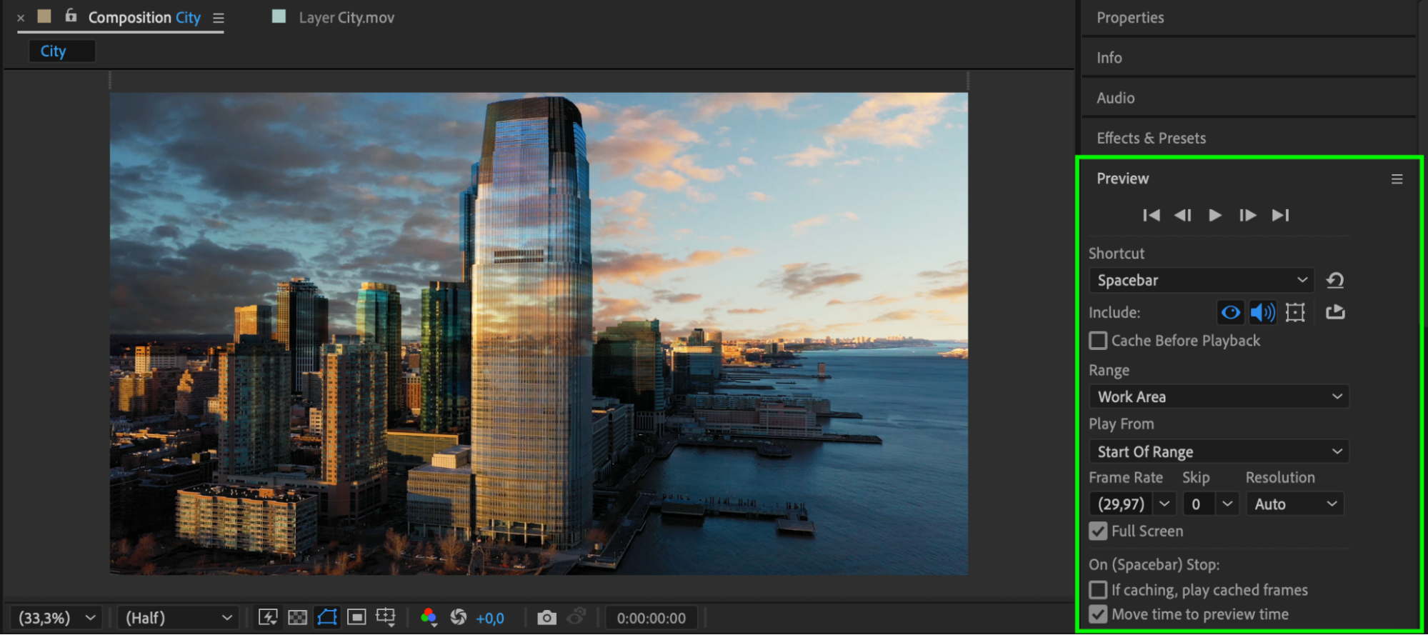 Press Spacebar to preview the composition. Watch for any unnatural edges or mismatches between the layers and fine-tune the settings as necessary.