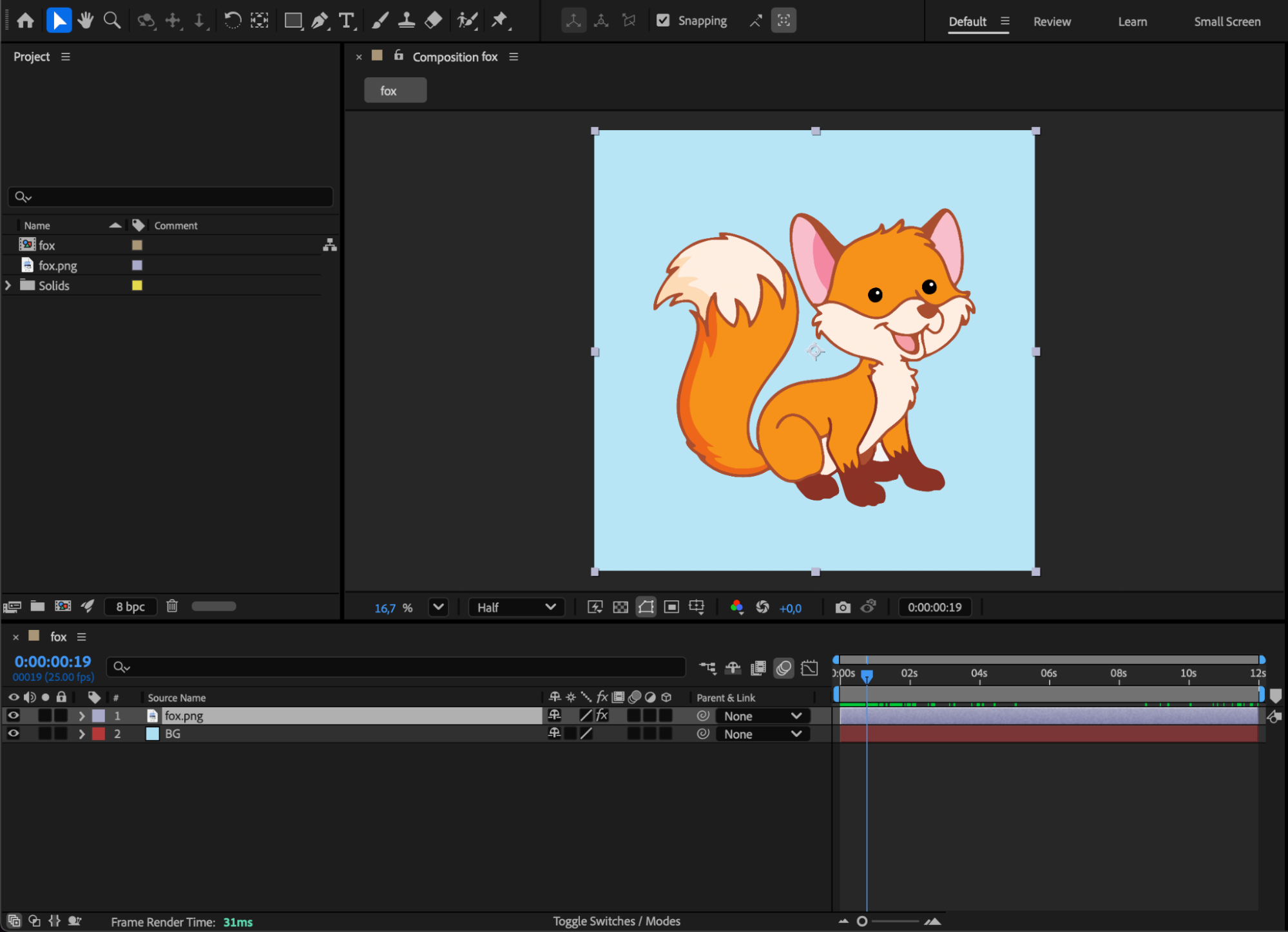 Start by opening your GIF project in After Effects. If your GIF consists of multiple layers (for example, a background and a moving object), make sure all layers are properly aligned in your timeline.