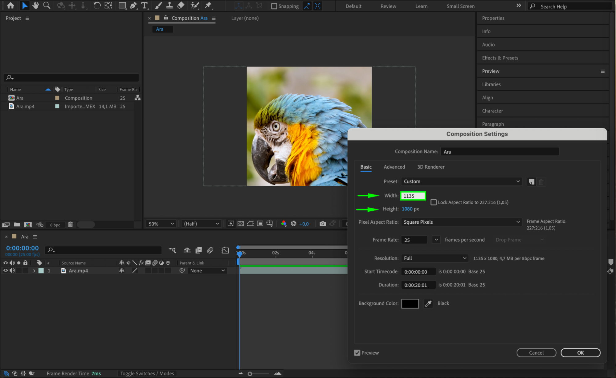 Note: Changing composition settings will alter the entire project’s resolution and aspect ratio, so ensure it aligns with your project requirements.