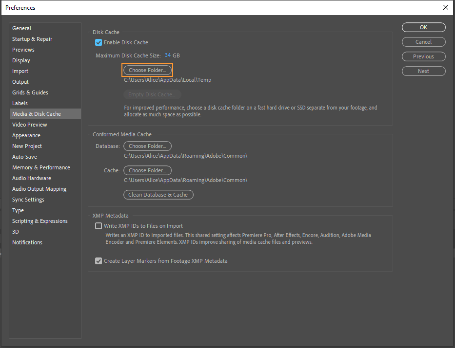 In the Media & Disk Cache preferences window, you will see a section labeled “Disk Cache.” Here, you can find the location of the disk cache folder on your computer. Take note of this folder as you will need to access it later.