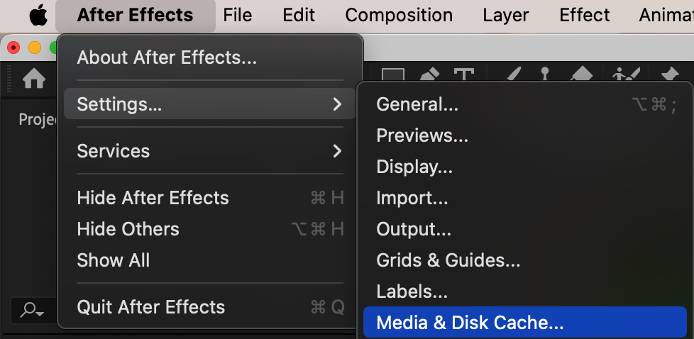 First, open After Effects on your computer by double-clicking the application icon on your desktop. Once After Effects is open, go to the top menu and click on “After Effects.” From the dropdown menu, select “Preferences” and then click on “Media & Disk Cache” if you are using a Mac. For Windows users, go to “Edit” > “Preferences” > “Media & Disk Cache.”