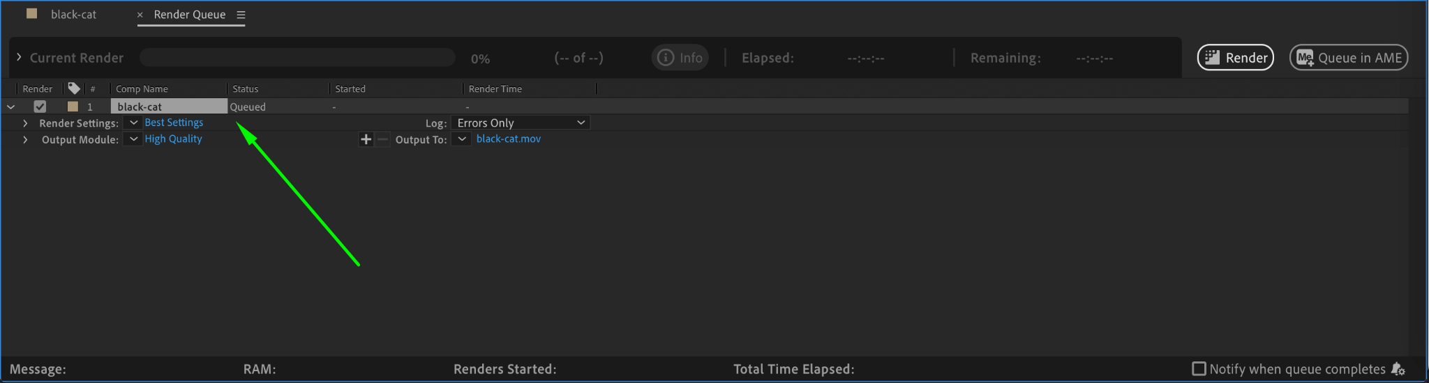 In After Effects, go to Composition > Add to Render Queue or simply open the Render Queue panel from the bottom of the interface. This panel displays all the compositions you’ve queued for rendering and provides an overview of current and past renders.
