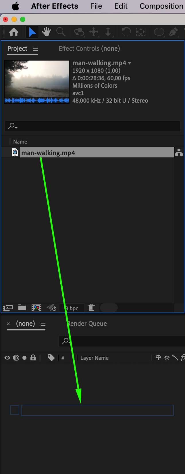 Start by importing your video file into After Effects where you are moving within the frame. This is crucial as the cloning effect works best with video where the subject moves across the scene. Go to File > Import > File and choose the footage you want to work with.