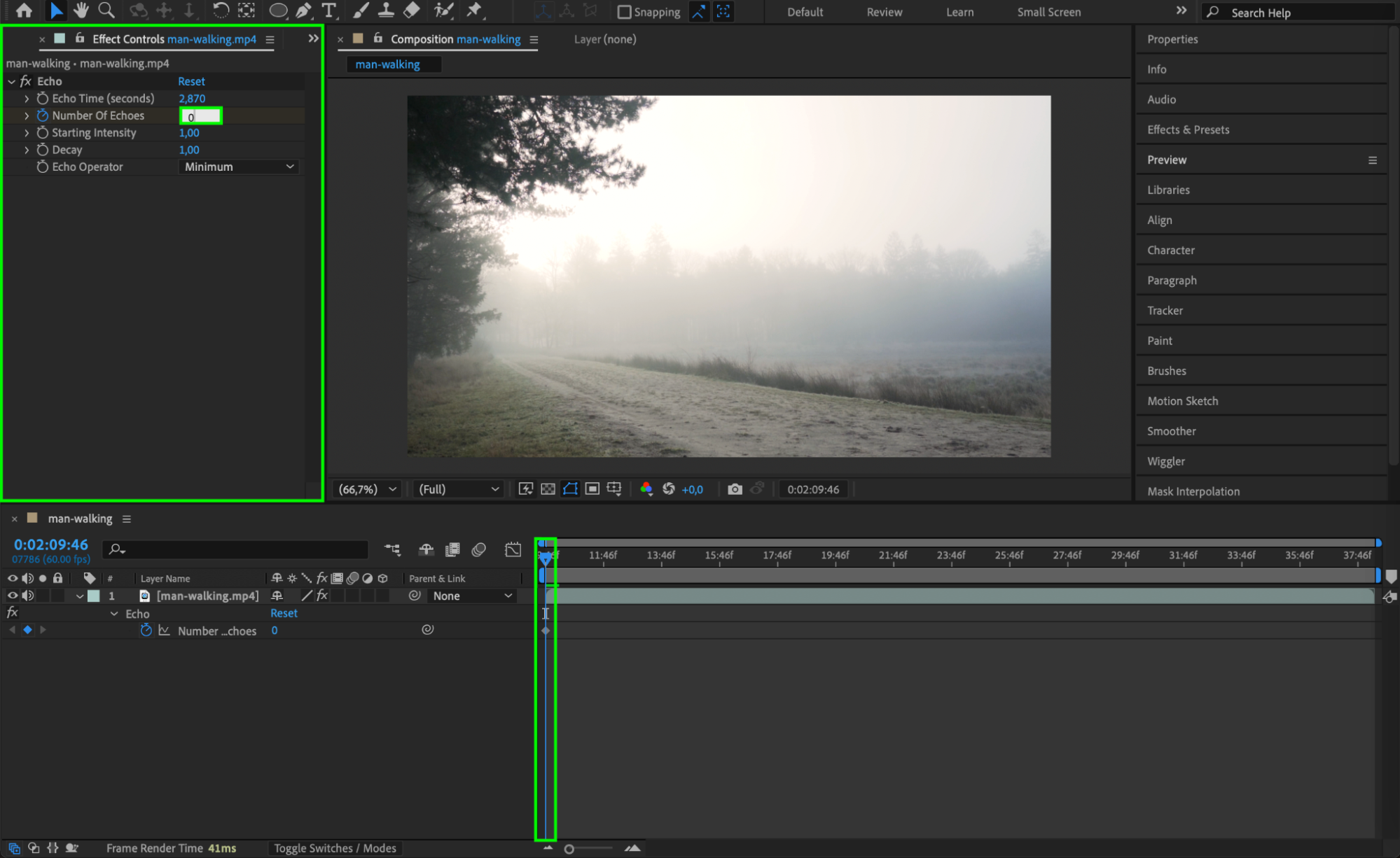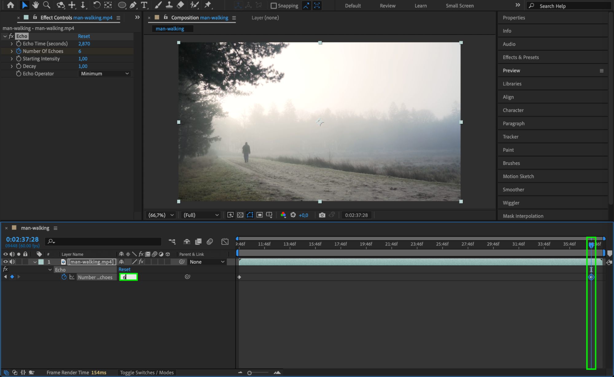 Now, animate the Number of Echoes over time to create a smooth transition.