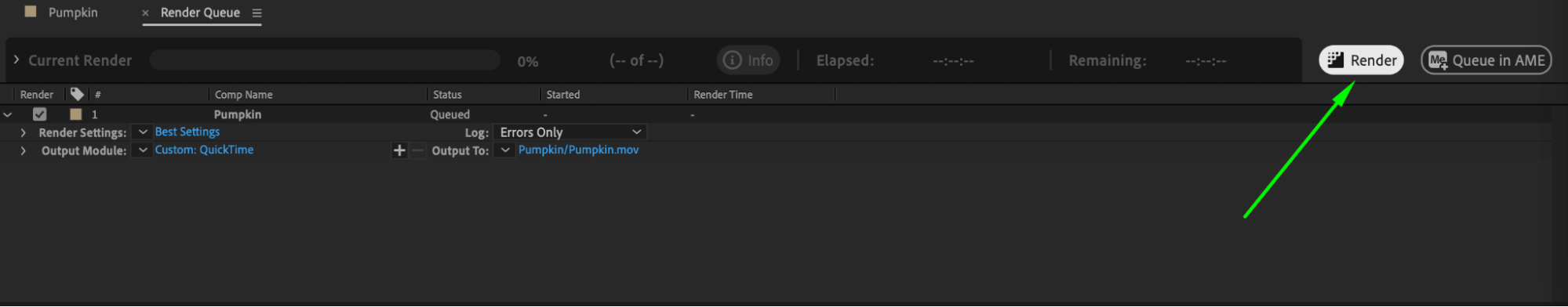 Once everything is set, click on the “Render” button in the Render Queue panel to begin the rendering process. The rendering time will depend on the complexity and length of your project and your computer’s processing power.