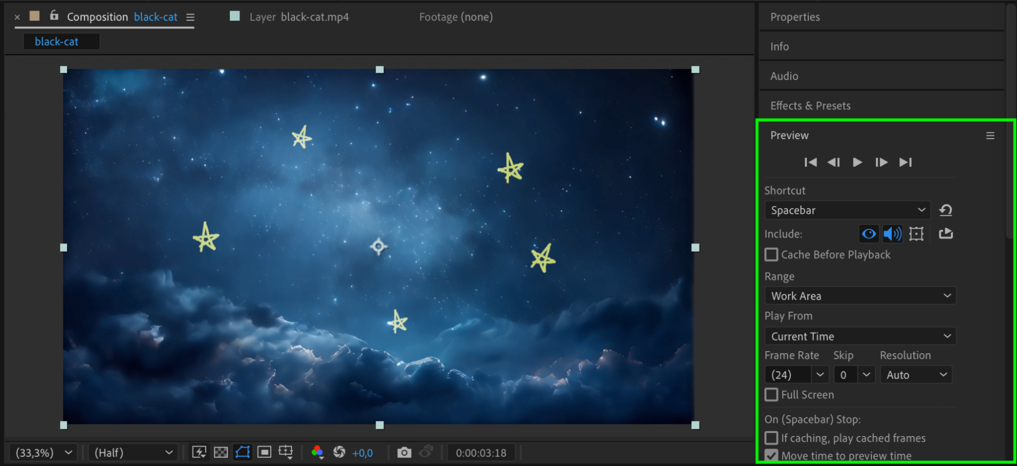 Press the spacebar to preview your animation. Ensure that the brush strokes are properly placed and synchronized with the rest of your composition.