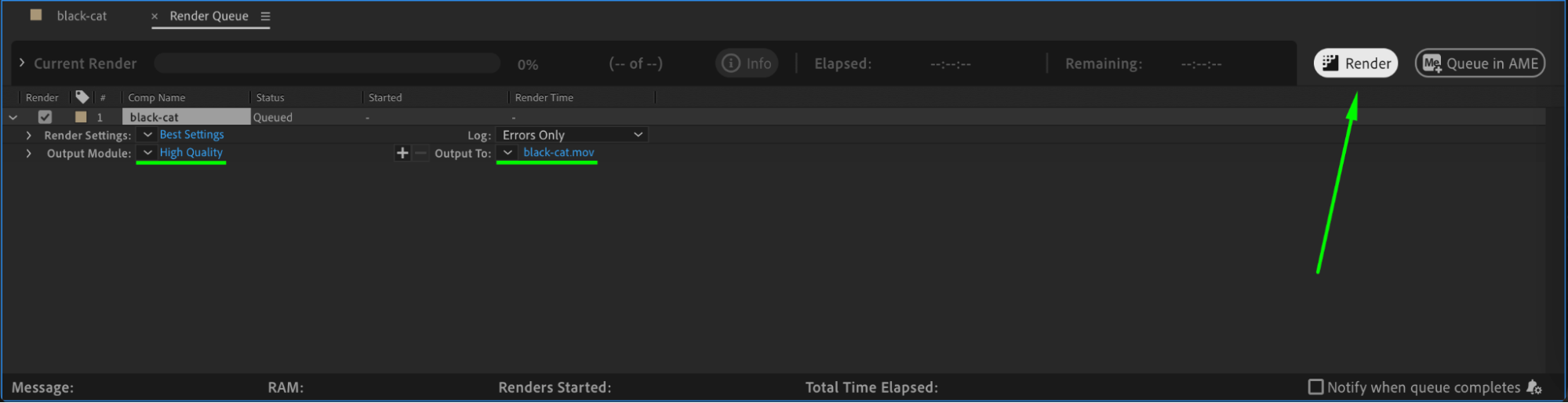 When satisfied with your animation, render your composition. Go to Composition > Add to Render Queue, configure your output settings, and click Render to export your project.