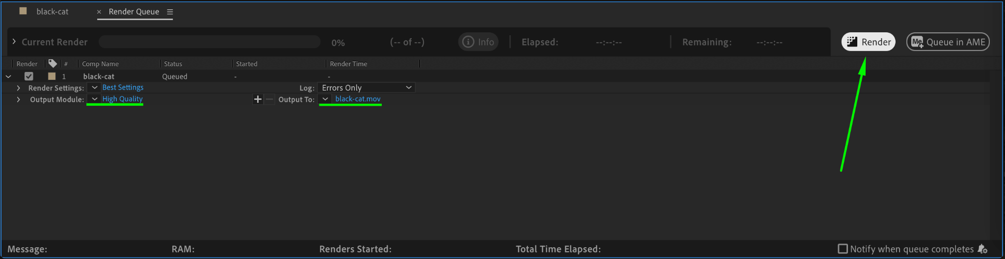 When you’re satisfied with the results, render your project. Go to Composition > Add to Render Queue, configure your output settings, and click Render to export your animation with the copied transform properties.