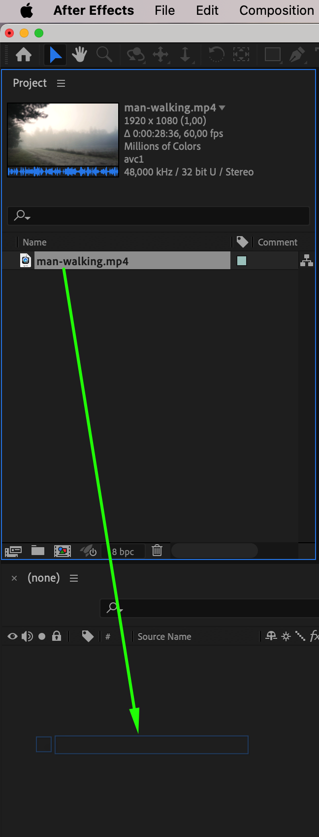 Go to File > Import > File and choose your video footage. Drag it into your timeline to start building your buffering scene. This will be the main video that appears to “pause” during buffering.