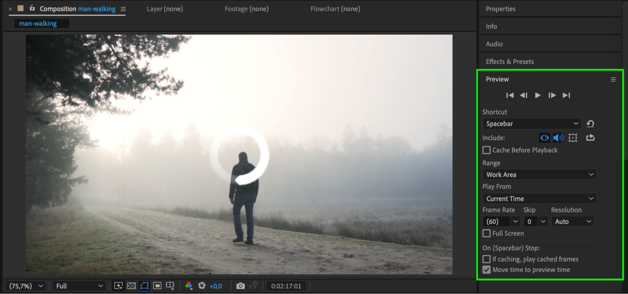 Press the spacebar to preview your animation. Check that the buffering symbol appears at the right time and that the freeze and resume work smoothly. Adjust timing if needed, then render your project.