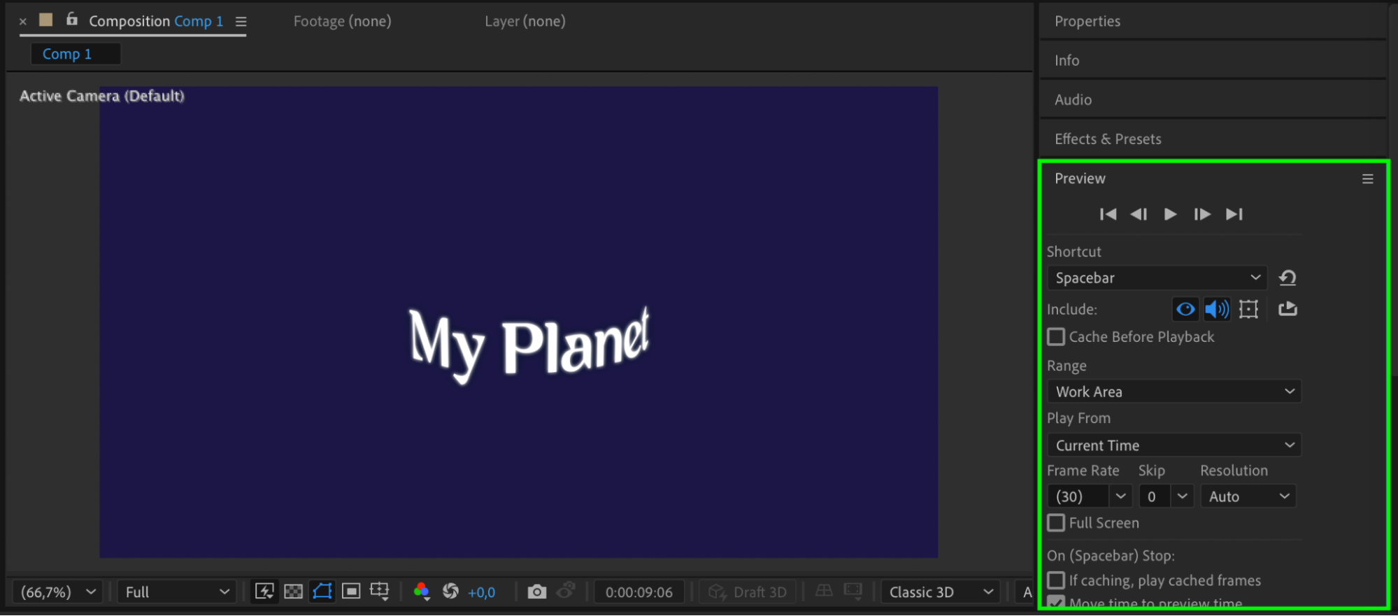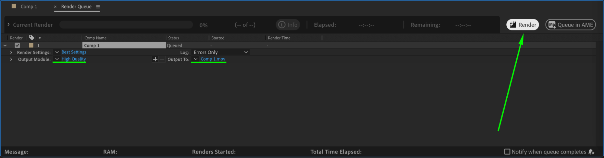 Once satisfied with the result, go to Composition > Add to Render Queue, set your output format, and render your animation.