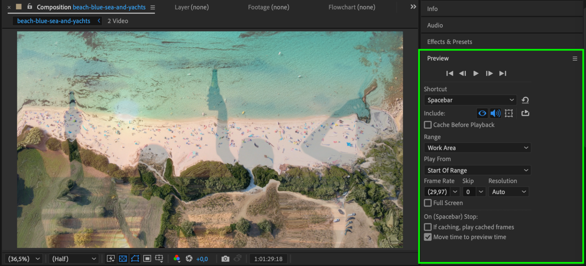Press the Spacebar to play the composition and check how the datamosh transition looks. Adjust any settings if needed to refine the effect.