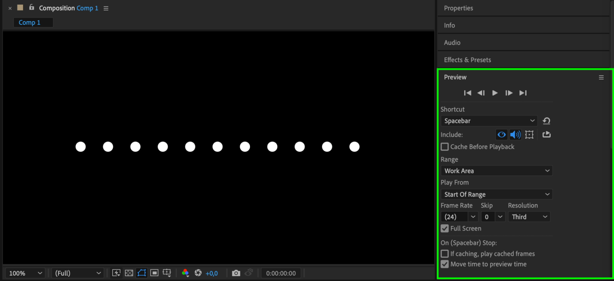 Press the Spacebar to preview your composition and see how the dotted line appears. This preview will help you check the spacing, dot size, and color, so make any final adjustments to the dash and gap values if needed.