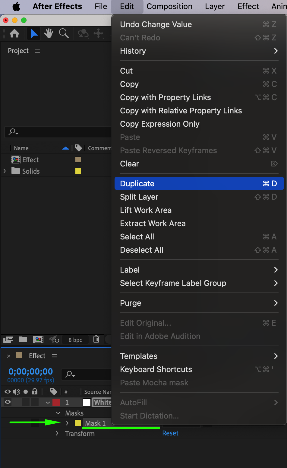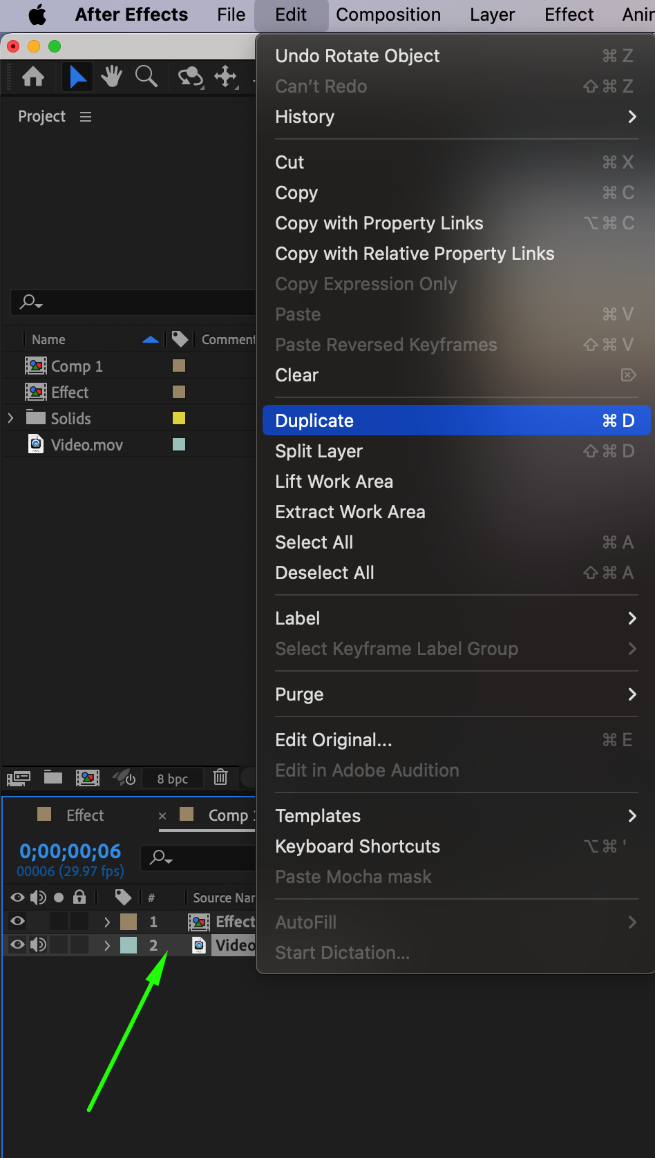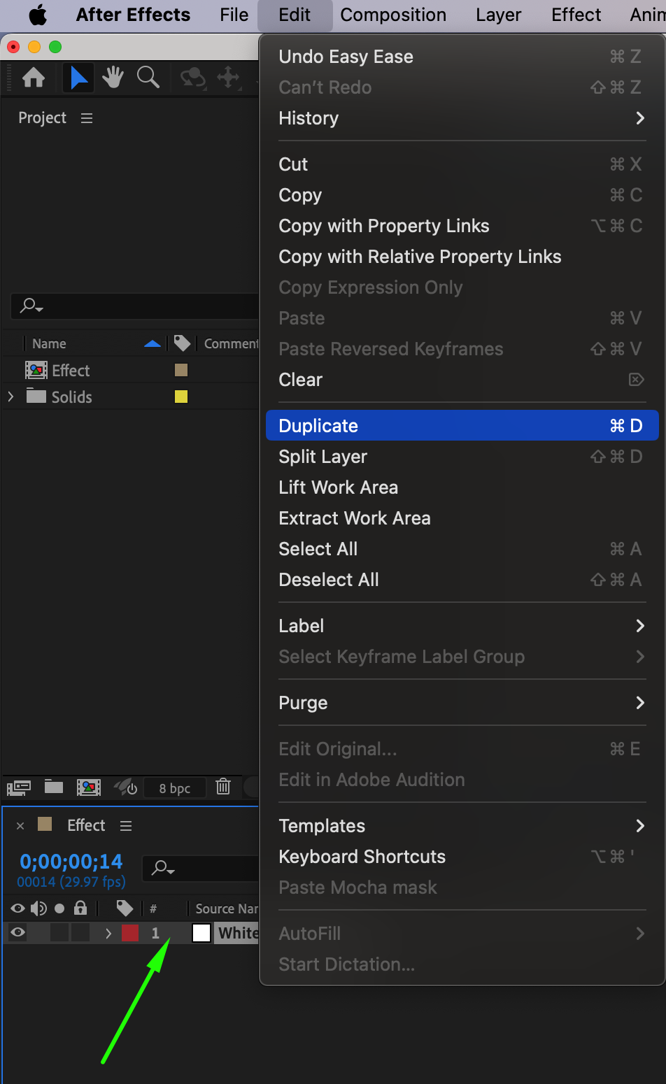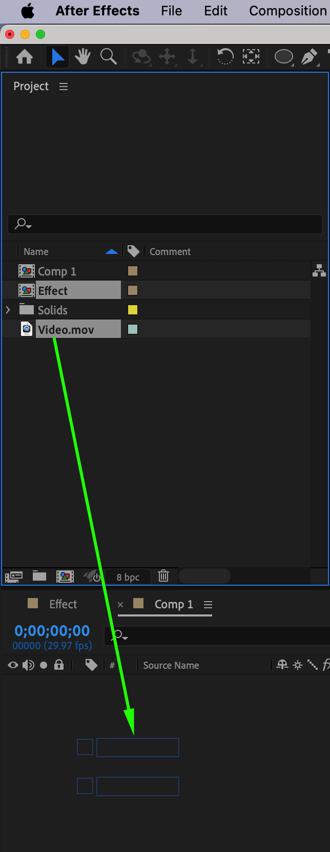 Right-click on the effect layer and choose Pre-compose to lock its position and make it easier to control in the timeline.