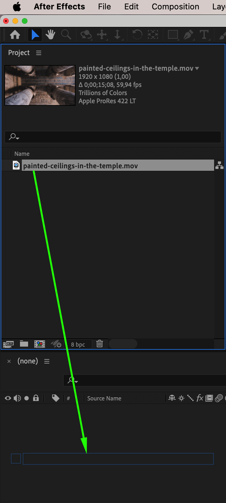 Begin by importing the video or image that you want to apply the glass break effect to. Go to File > Import > File, select your footage, and click Open. Once the footage is imported, drag it directly onto the Timeline panel. This will automatically create a new composition based on the dimensions and frame rate of your footage, ensuring your settings match perfectly.