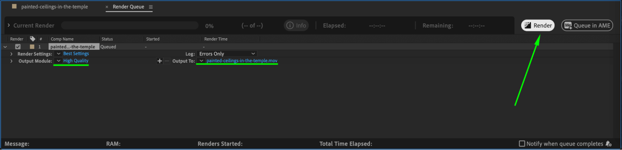 Once satisfied with the effect, render your project to export it. Go to Composition > Add to Render Queue, set the output format and location, and click Render.