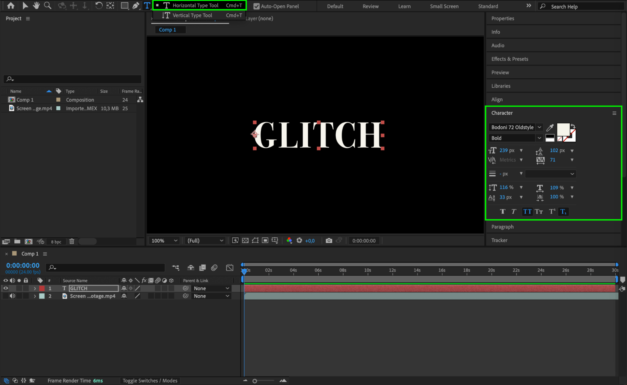 Create the text you want to apply the glitch effect to by selecting the Text Tool (Ctrl/Cmd + T). Type your desired text and customize its appearance using the Character Panel. Choose a font that complements the glitch aesthetic, such as a bold and futuristic style.