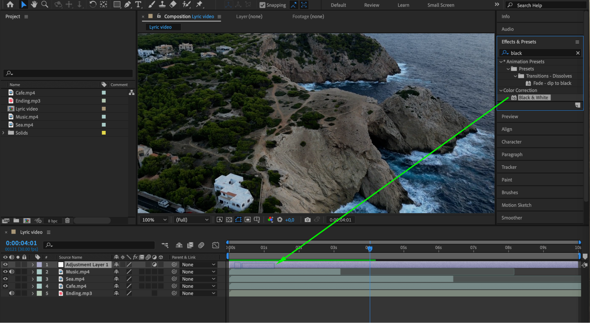 To begin, import all your video, audio, and other necessary elements into After Effects. Go to File > Import > File and select the files you need for your lyric video.