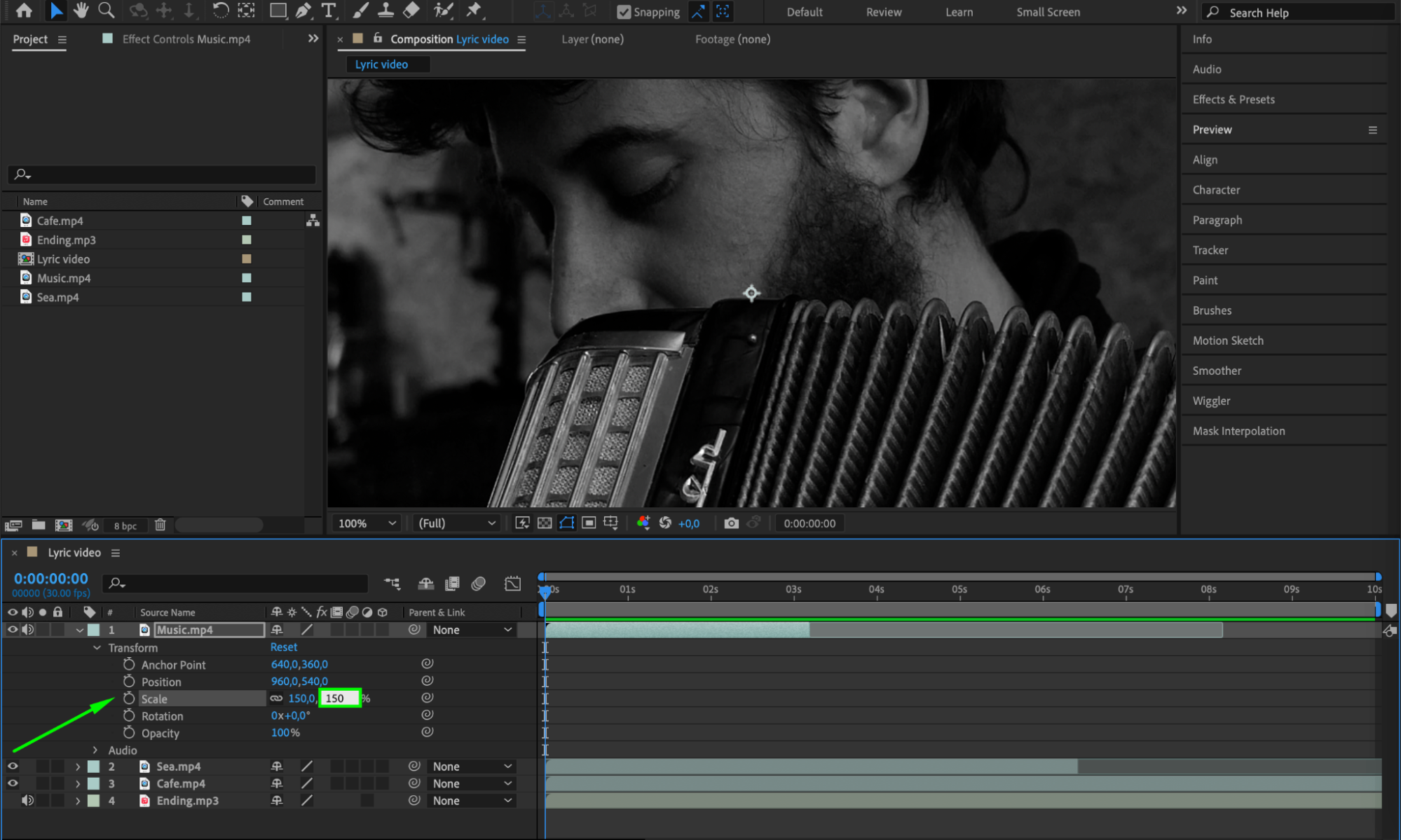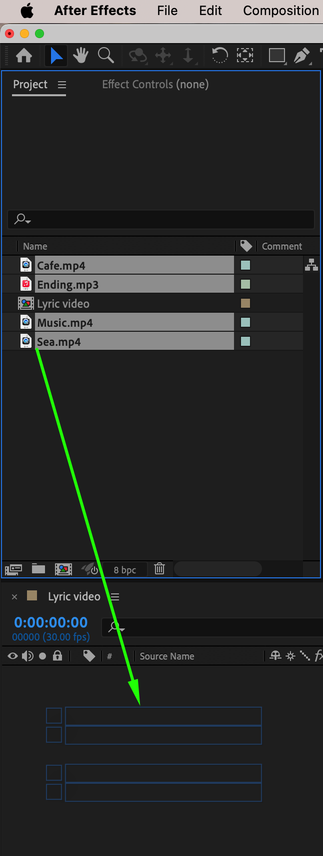 To begin, import all your video, audio, and other necessary elements into After Effects. Go to File > Import > File and select the files you need for your lyric video.