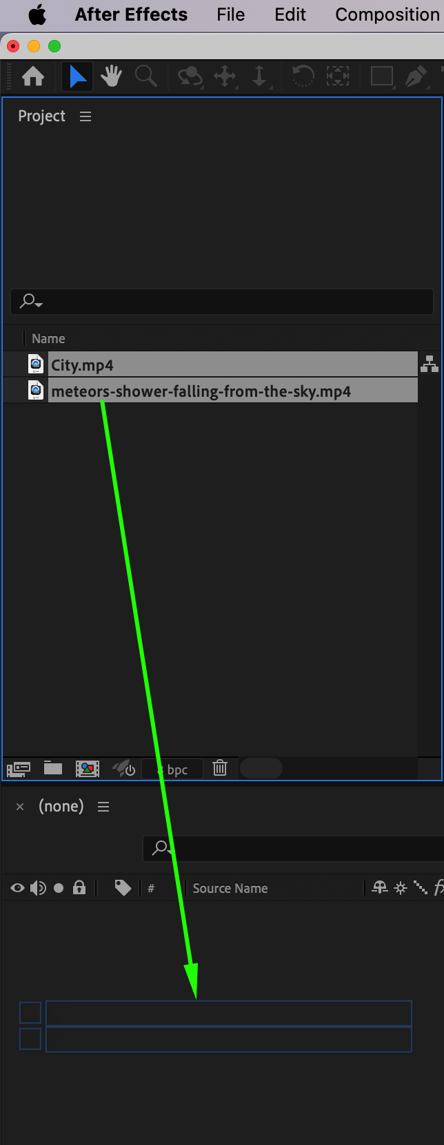 Start by importing your main footage (the background scene) and stock footage of a meteor. To do this, go to File > Import > File, select your files, and add them to the timeline. Place your main footage at the bottom layer and your meteor footage above it.
