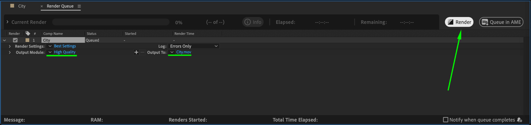 Once satisfied with the effect, render the project. Go to Composition > Add to Render Queue. Choose the desired format and quality settings, then click Render.