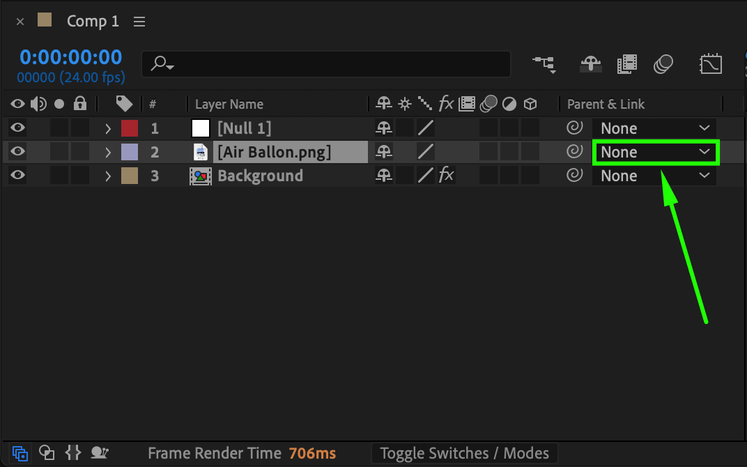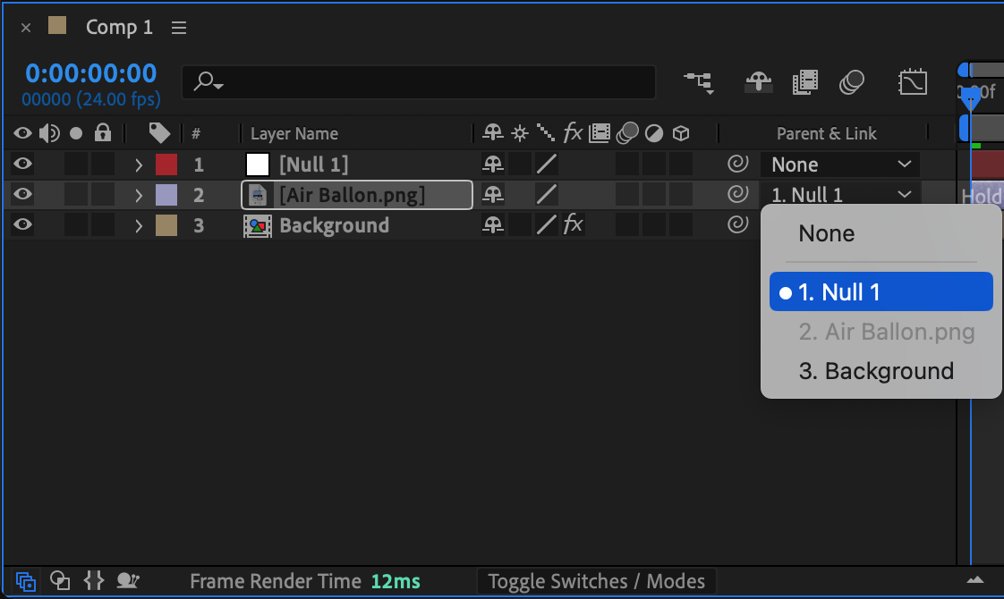 With the null object in place, the next step is to link your main object to the null object. In the timeline, select the layer of the object you wish to animate. Locate the pick whip icon (a swirl icon) next to the Parent property and drag it onto the null object layer. Alternatively, you can use the “Parent & Link” column to establish this connection. This step ensures that your object follows the motion path dictated by the null object.