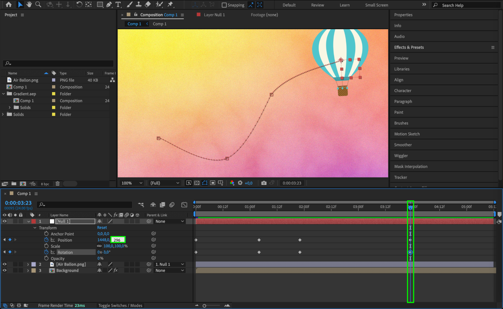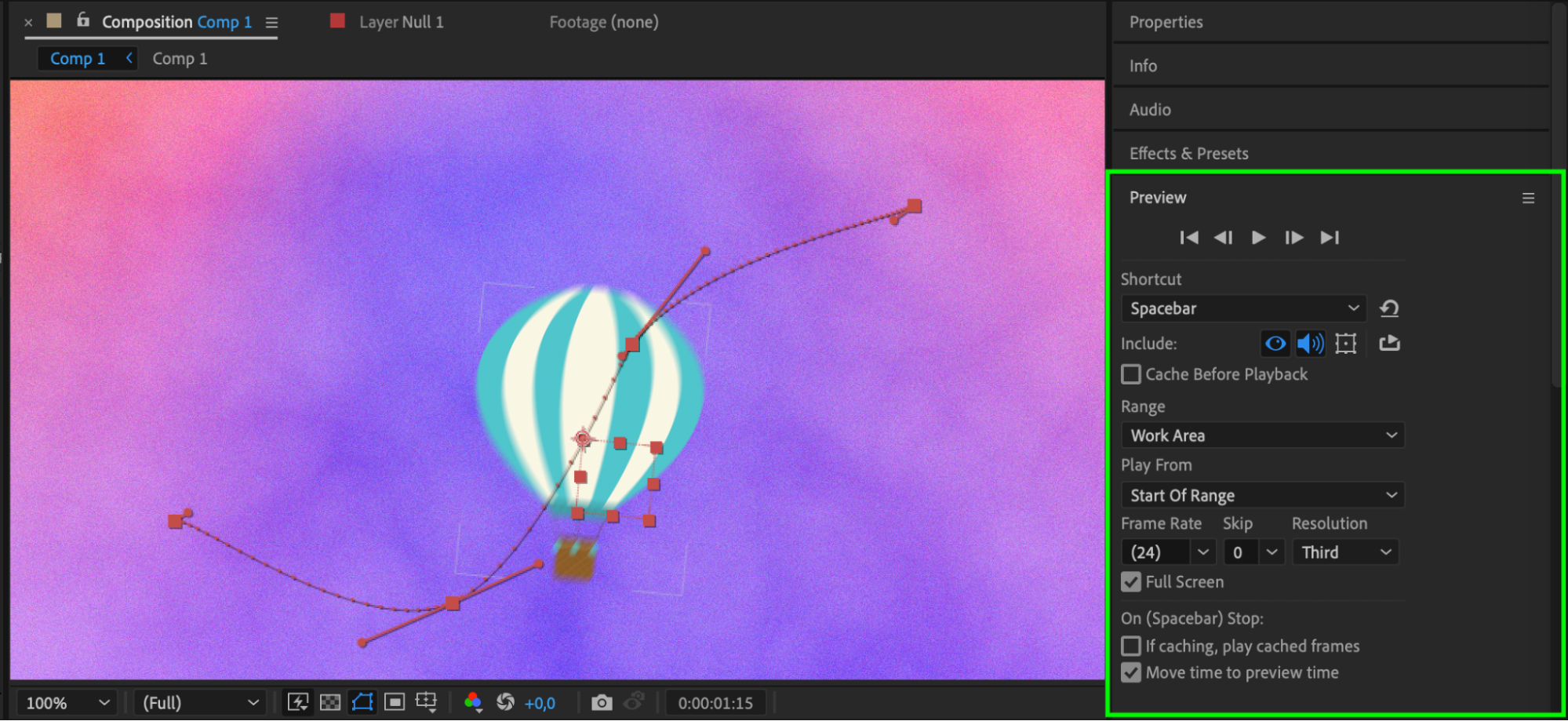 Before finalizing your animation, preview it to ensure everything looks as expected. You can scrub through the timeline or press the spacebar to play the composition. If the motion path doesn’t look quite right, return to the timeline to adjust the keyframes until the animation flows smoothly and meets your vision.