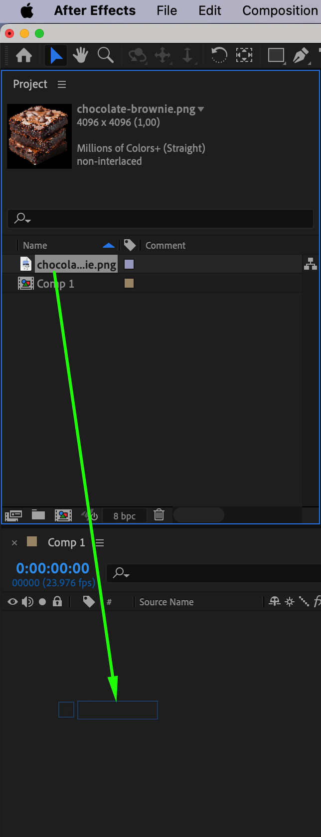 Go to File > Import > File and select the assets you want to use for your poster (images, videos, logos, etc.). Drag and drop them into your Project Panel, and then place them on the timeline in the order you prefer.