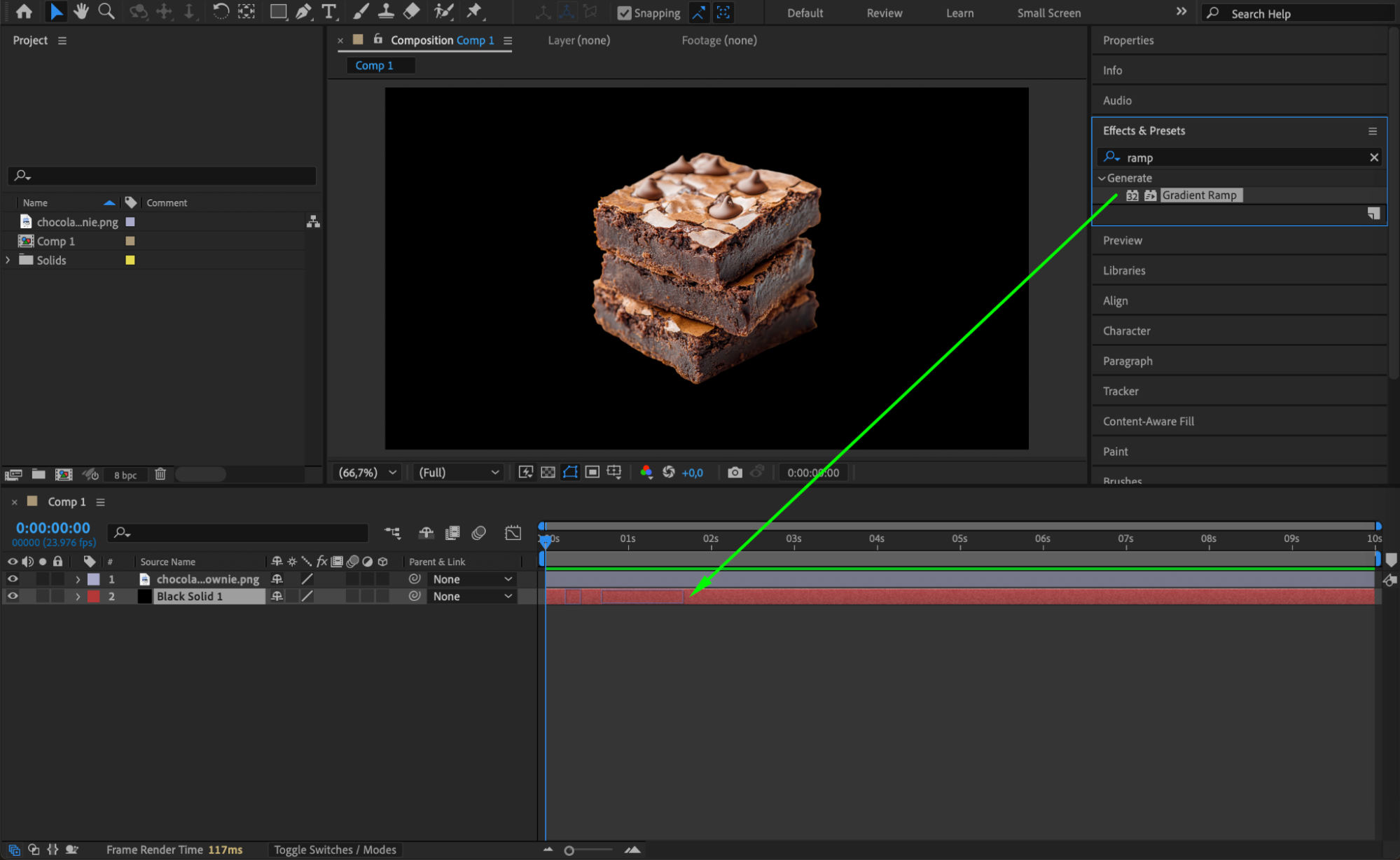 Drag the Gradient Ramp effect from the Effects & Presets panel to the solid layer. Choose colors that are eye-catching and complement the theme of your poster. The gradient will add depth and dimension to the background.