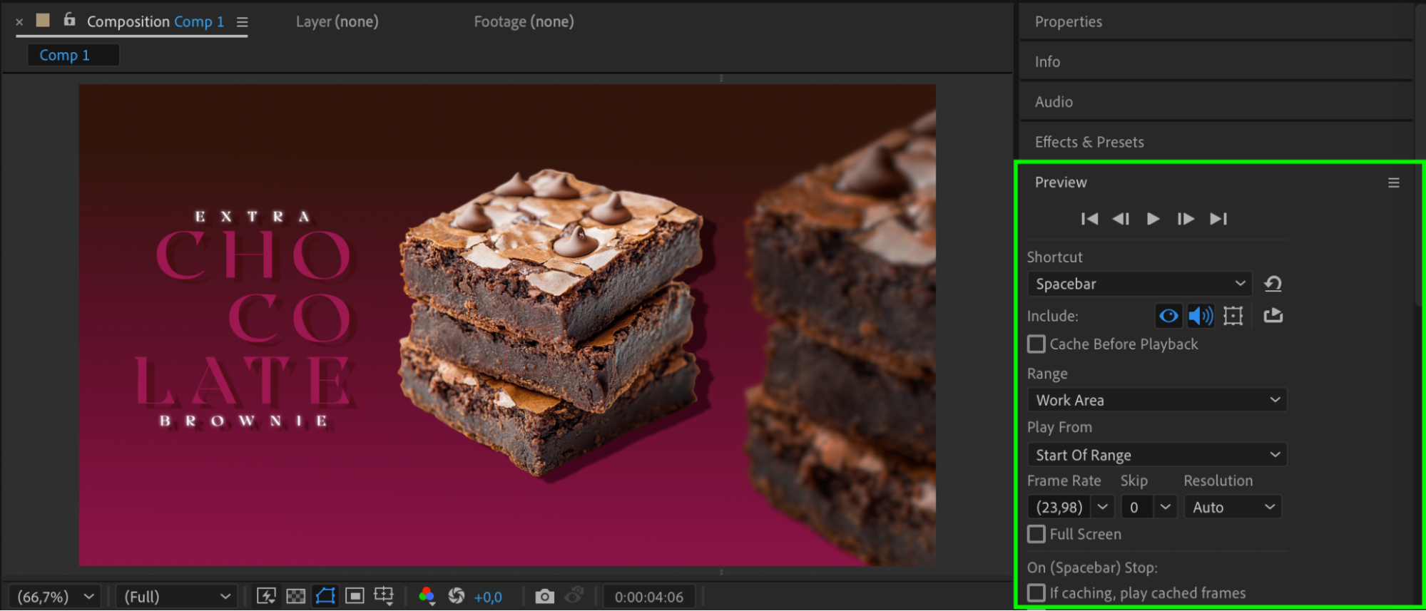 Once everything is set up, preview your motion poster by pressing Spacebar. Make sure all animations are smooth, and the poster looks visually appealing.